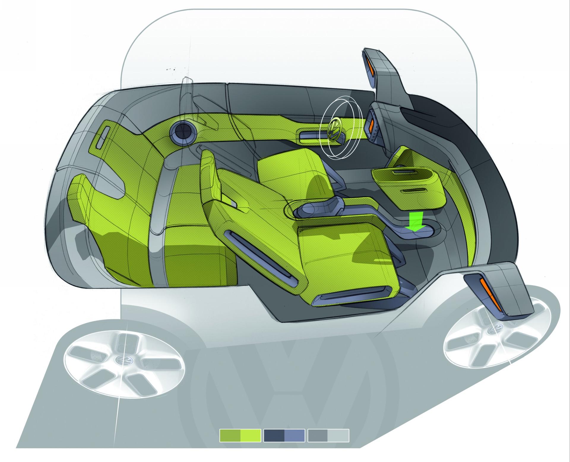 Скачать обои для рабочего стола 2010 Volkswagen E-Up Concept зарисовка внутри и фото