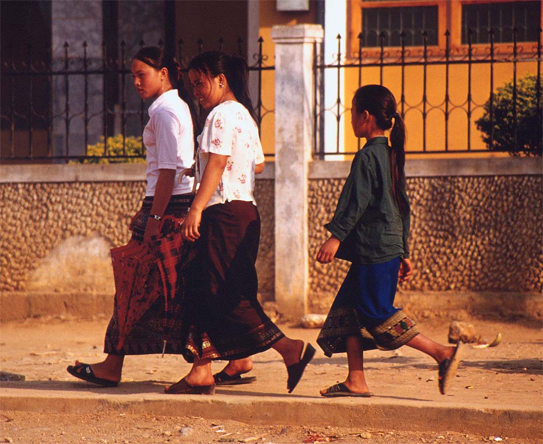 Скачать обои для рабочего стола 3 девочки идут по улице и фото