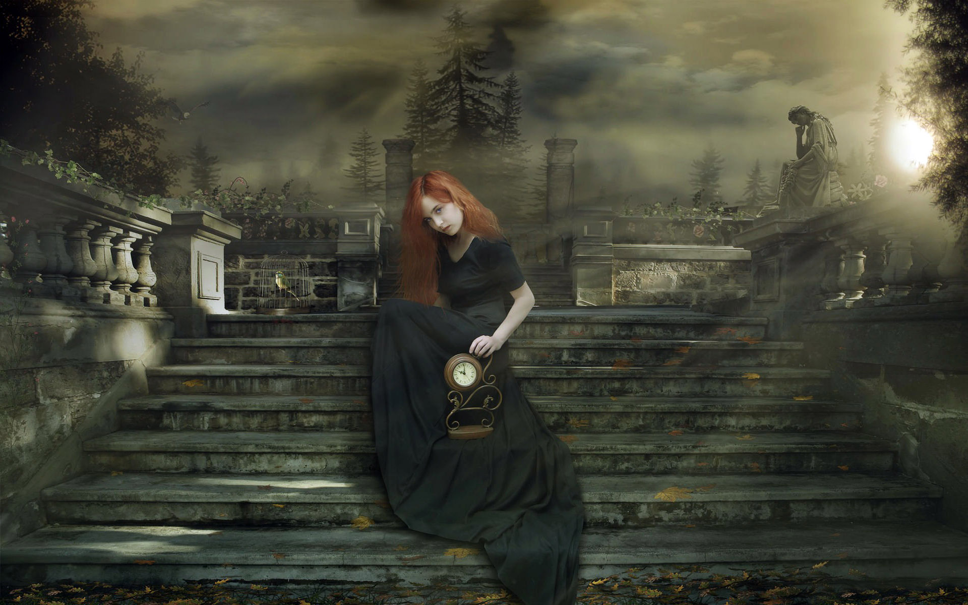 Скачать обои для рабочего стола 3D Girls Beauty with a clock и фото
