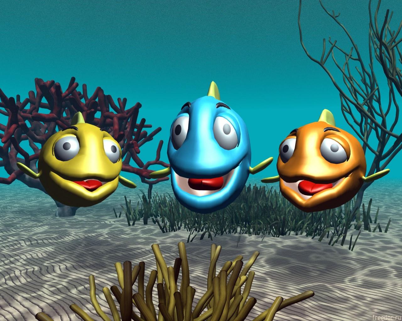 Скачать обои для рабочего стола 3D Рыбки и фото