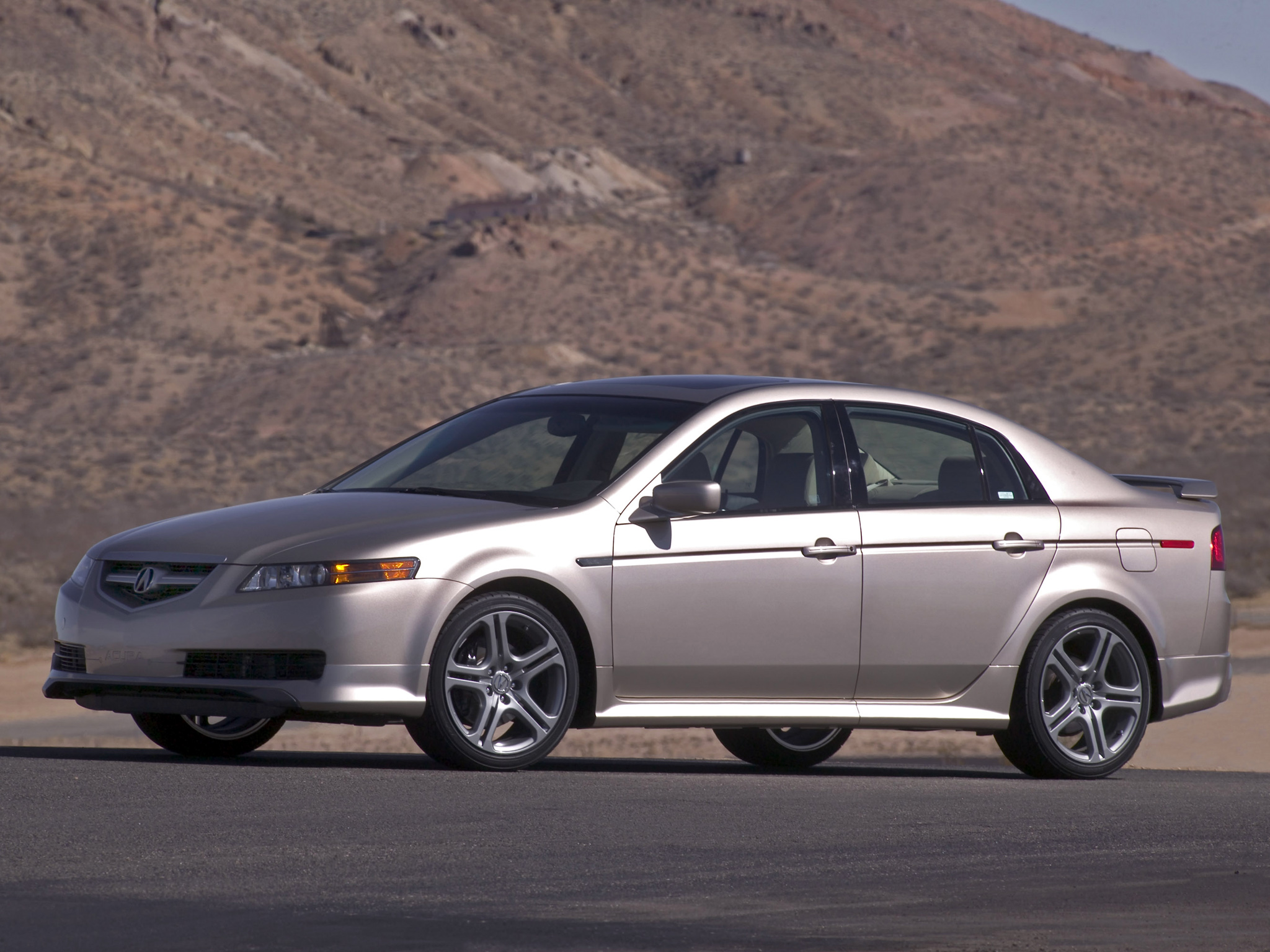 Скачать обои для рабочего стола Acura TL A-Spec 2004 горы и фото