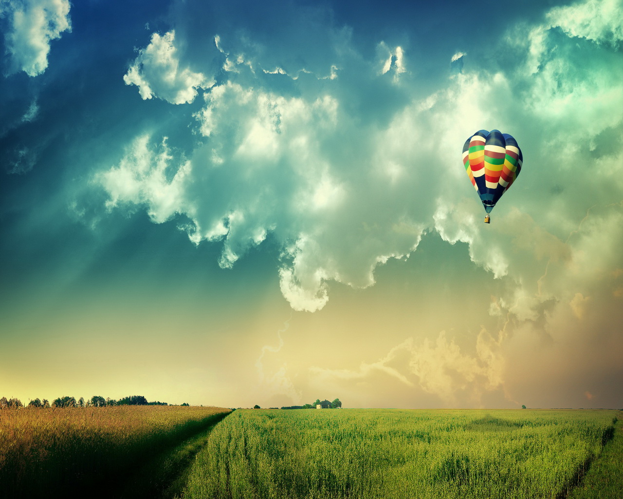 Обои Аэростат над полем