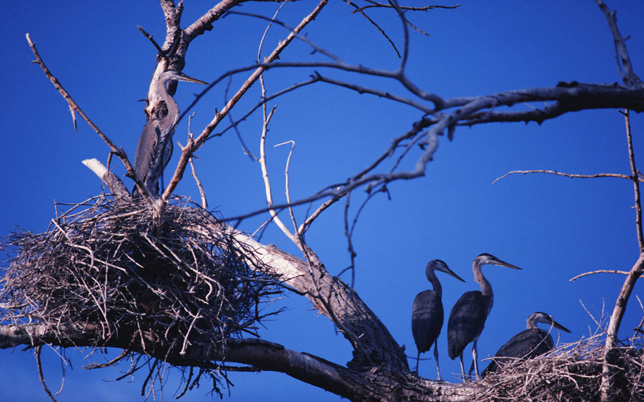 Скачать обои для рабочего стола Аисты около гнезда и фото