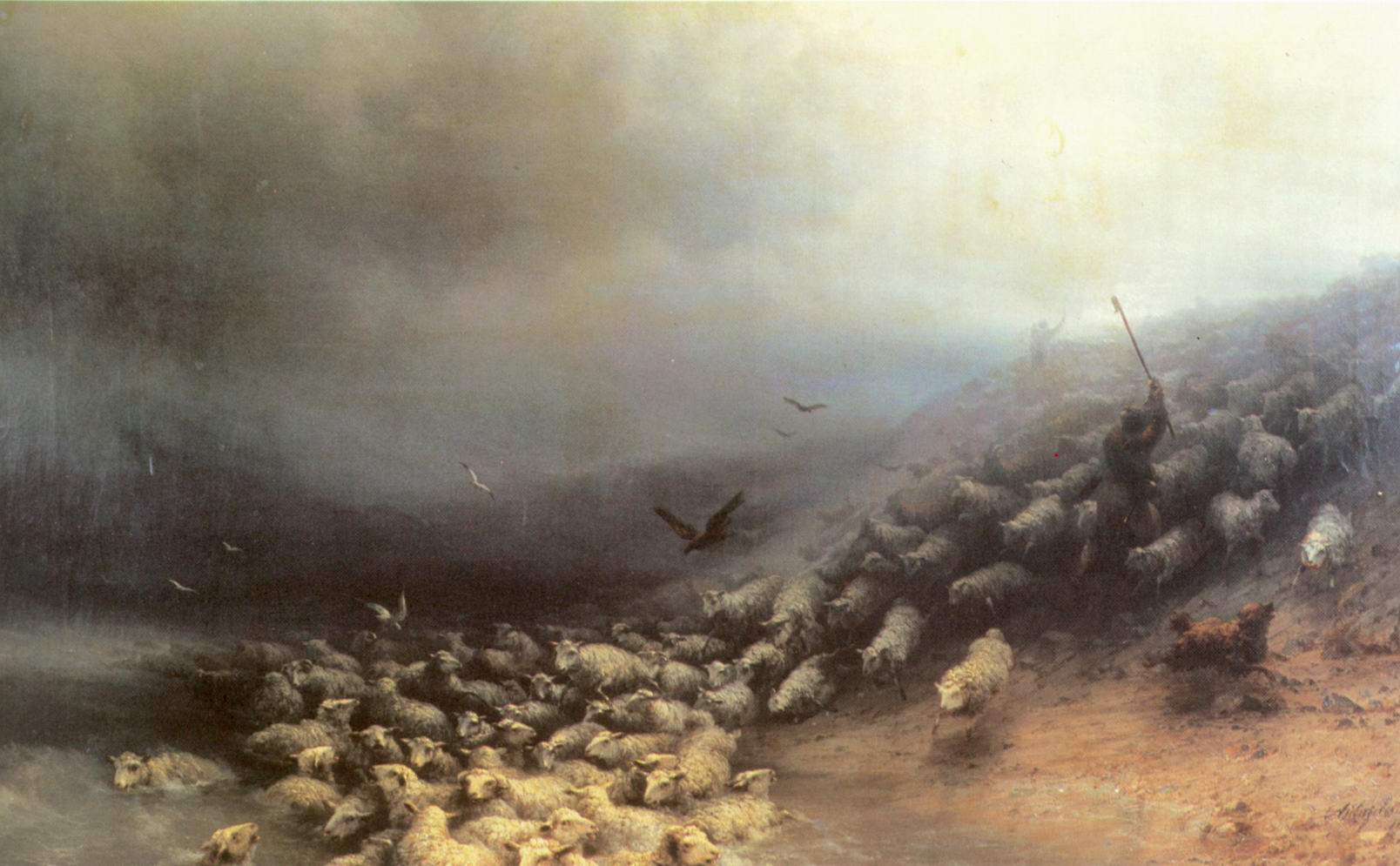 Обои Айвазовский Иван Константинович-Отара овец в бурю