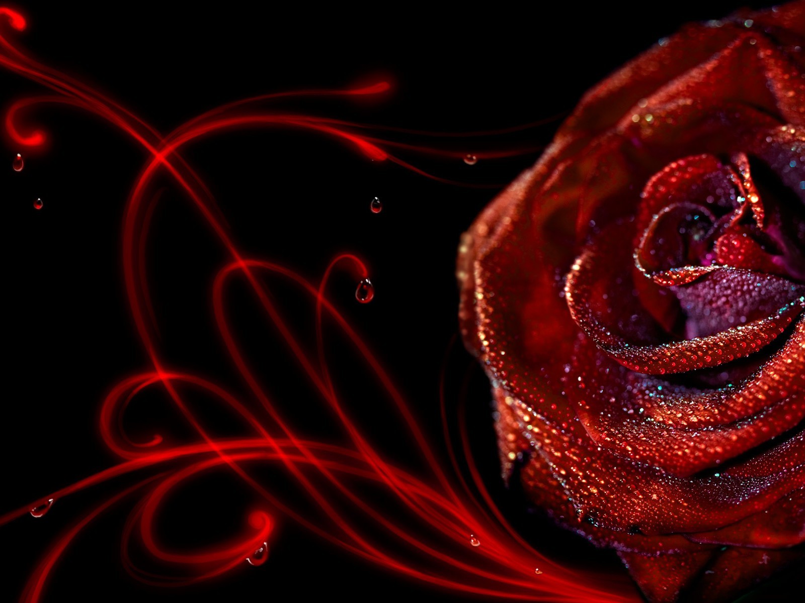 НАВИГАЦИЯ: ОБОИ ДЛЯ РАБОЧЕГО СТОЛА >> ОБОИ Цветы >> Обои Алая роза с каплями росы