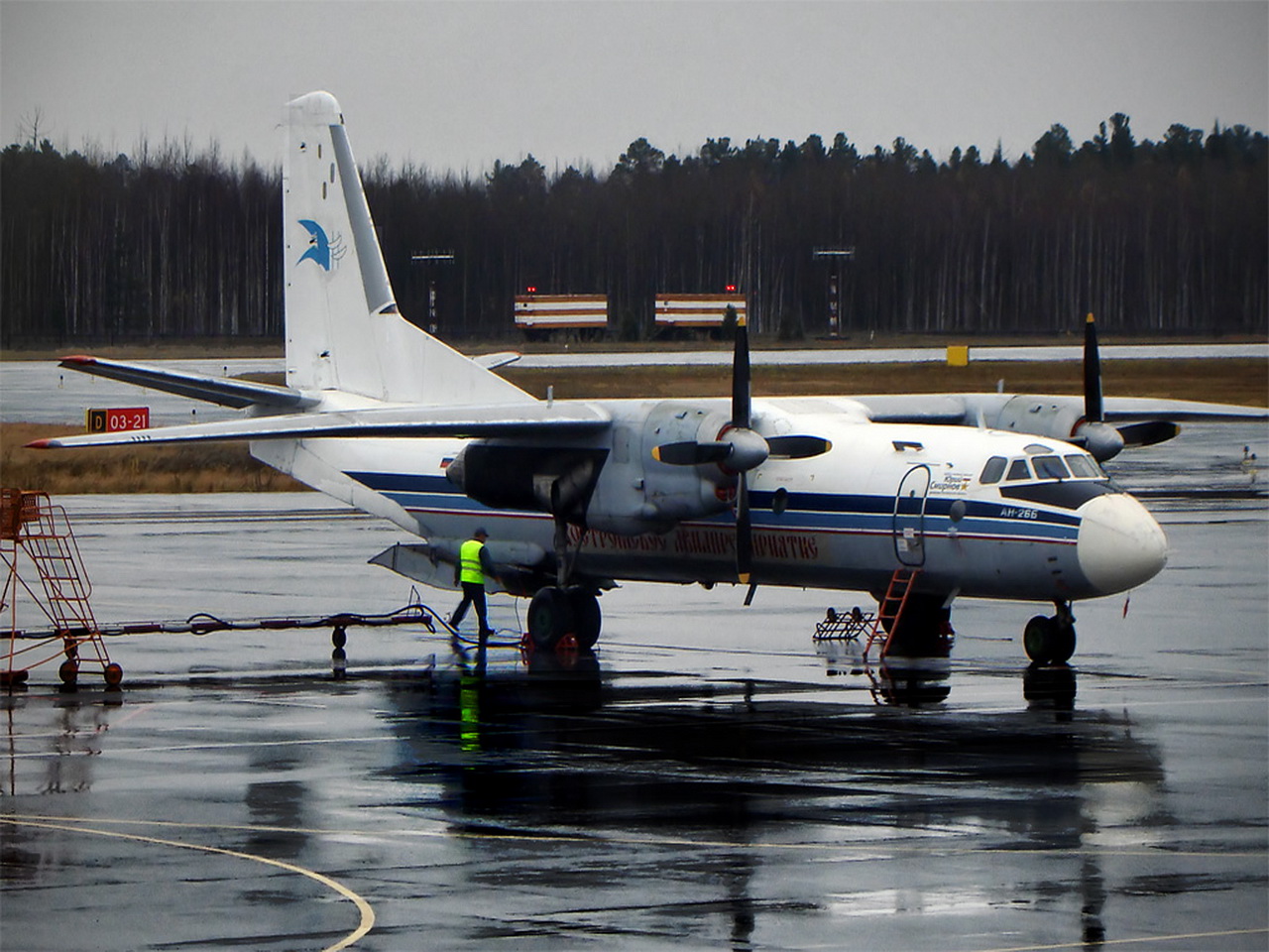 Скачать обои для рабочего стола АН-26 на скользкой после дождя полосе и фото