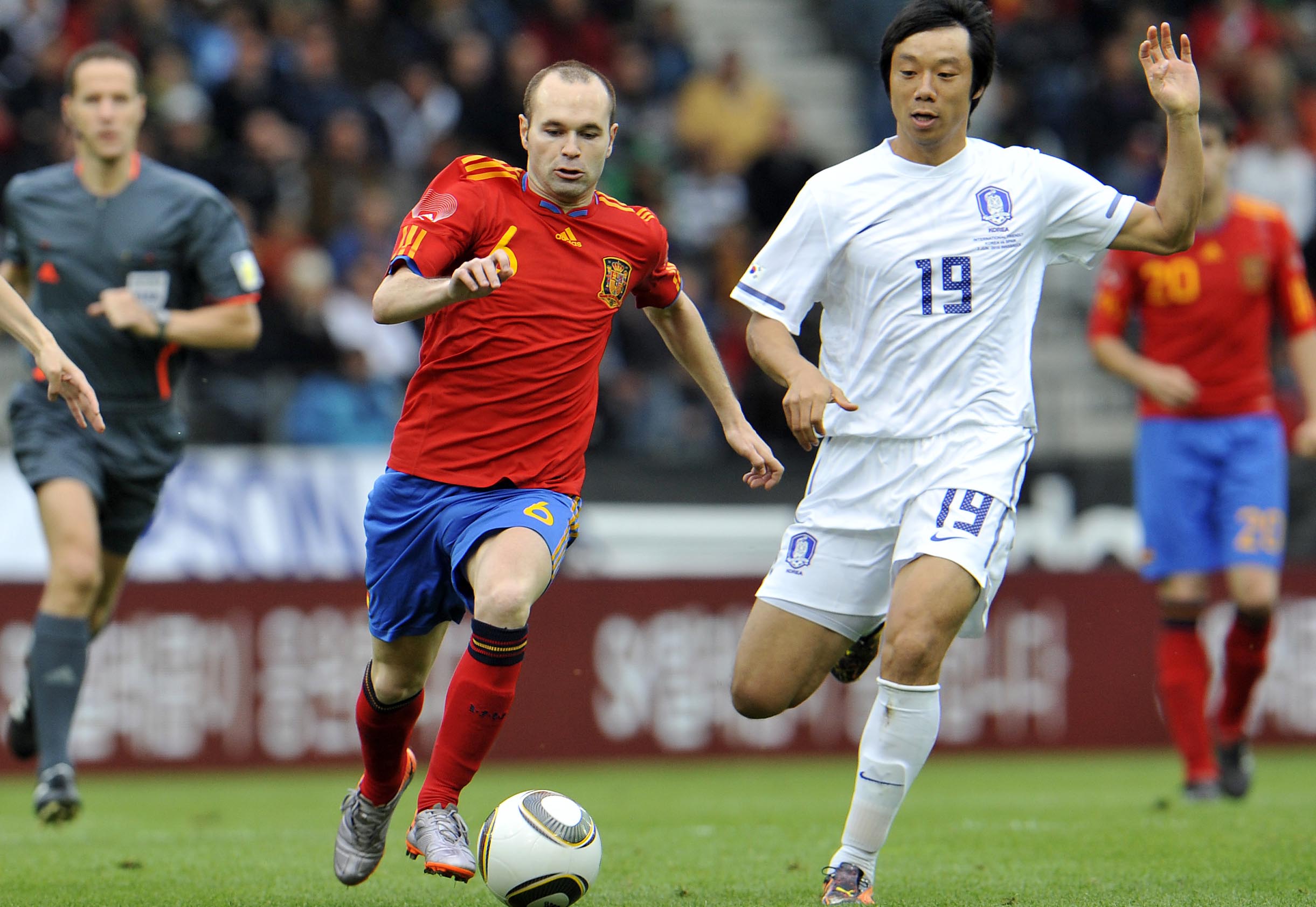 Скачать обои для рабочего стола Андрес Иниеста с мячом и фото