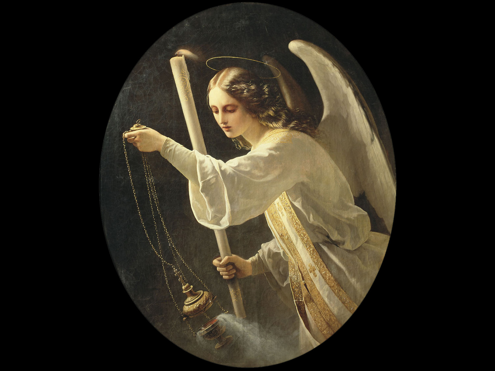 Скачать обои для рабочего стола Ангел с кадилом и свечей и фото