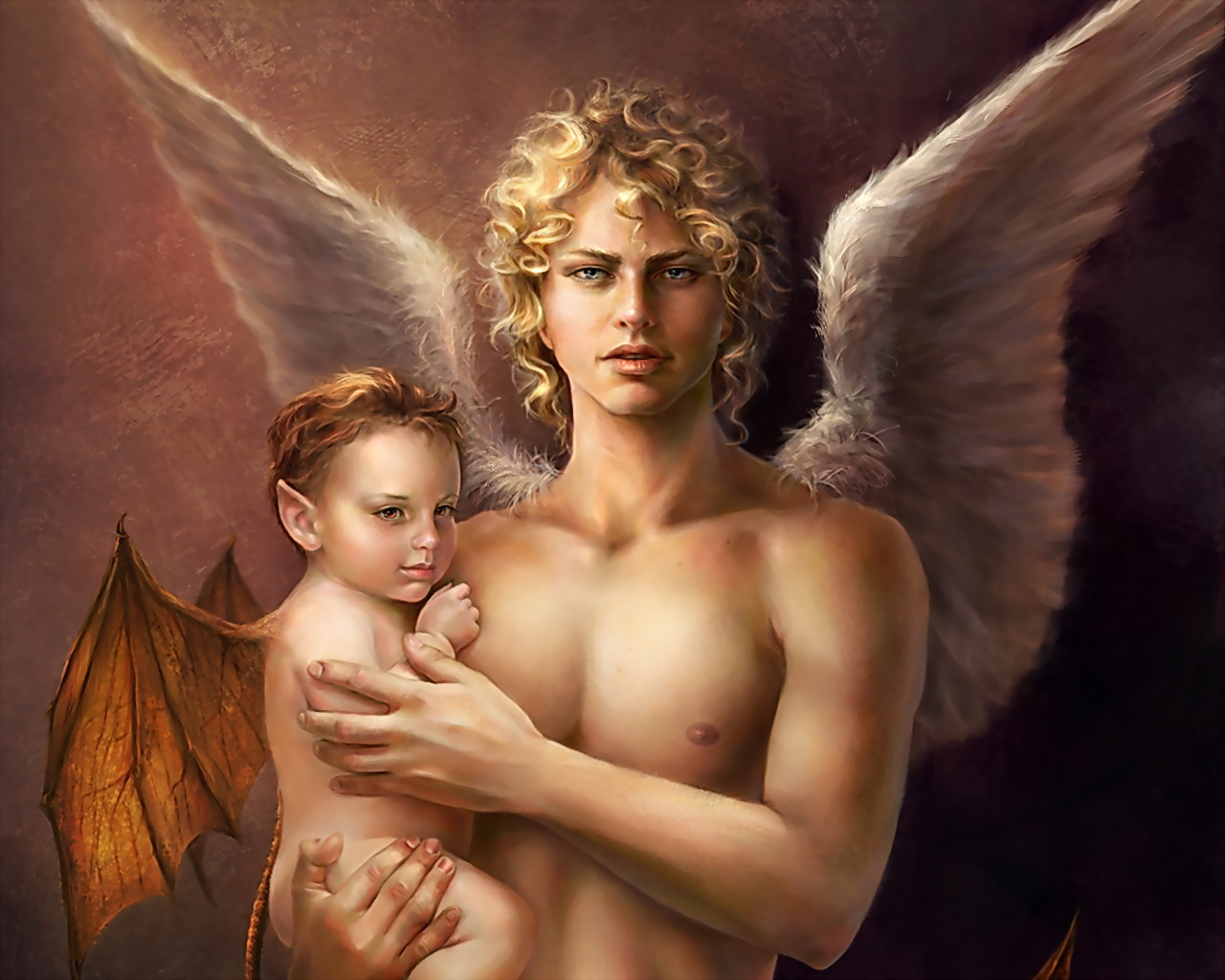 Скачать обои для рабочего стола Ангел с маленьким плохим ангелочком и фото