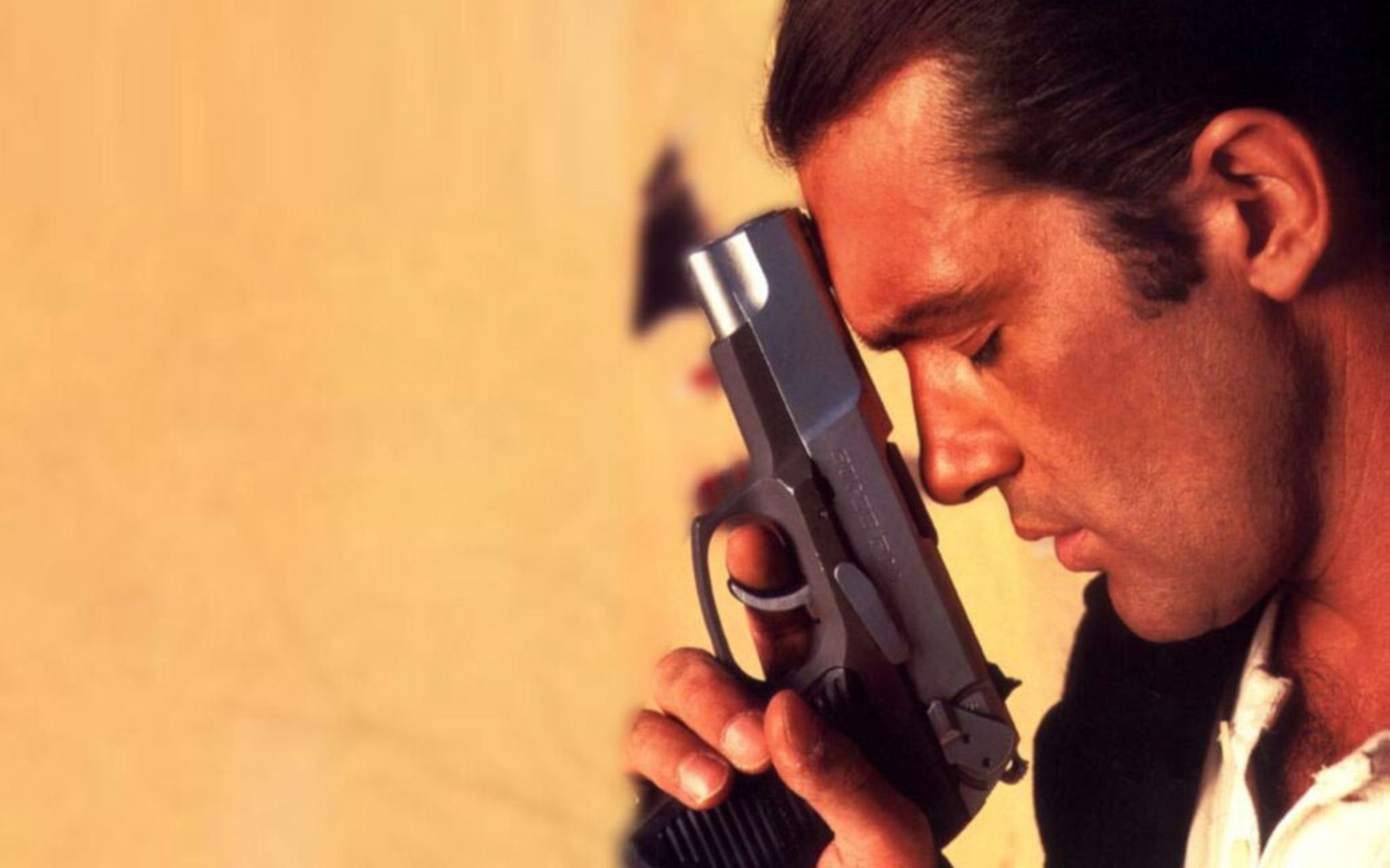 Скачать обои для рабочего стола Antonio Banderas с пистолетом и фото