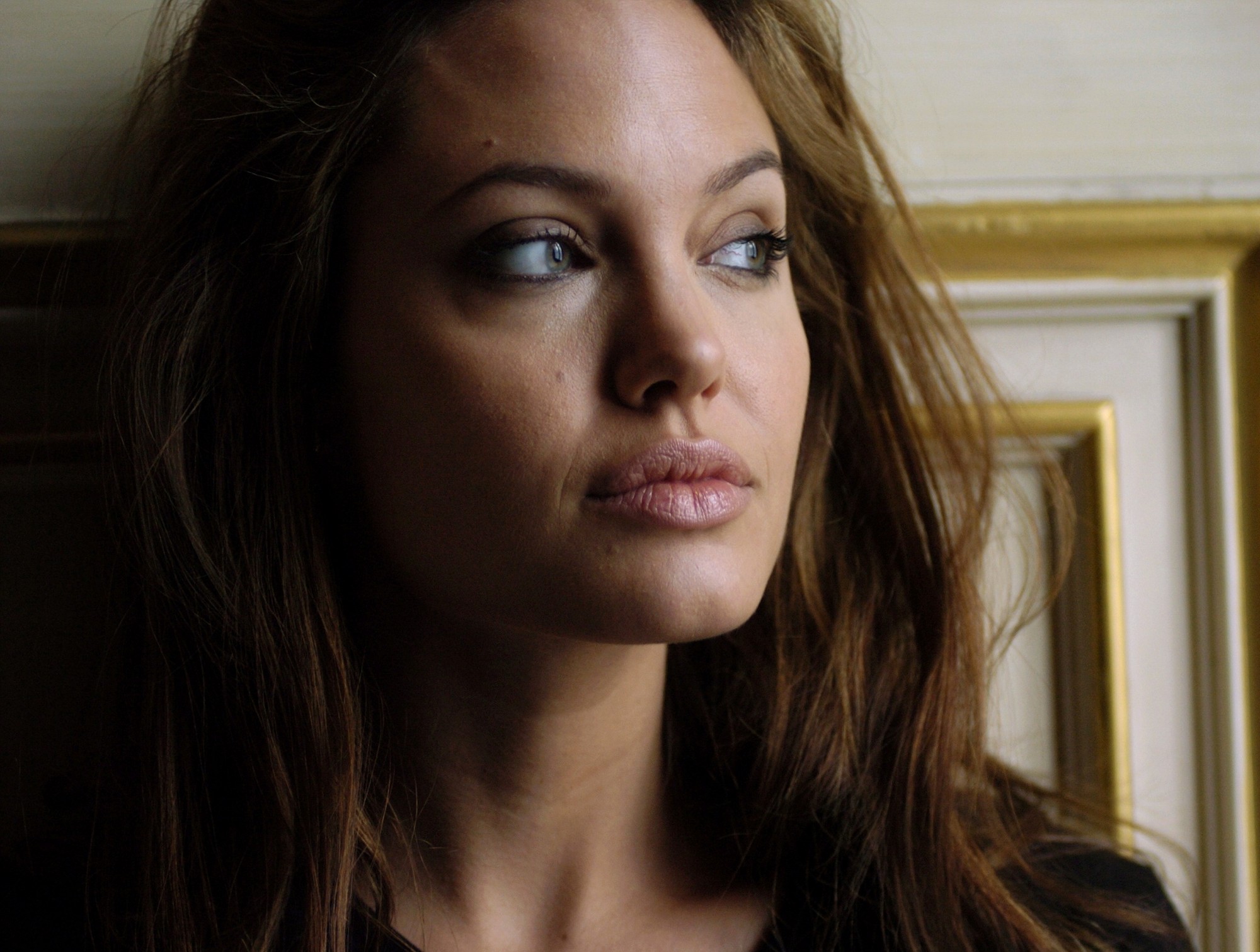 Скачать обои для рабочего стола Анжелина Джоли смотрит в сторону и фото