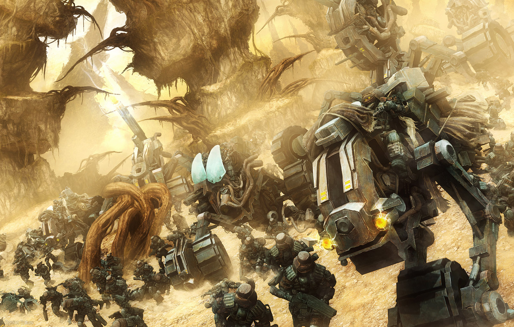 Скачать обои для рабочего стола Армия людей и механических монстров и фото