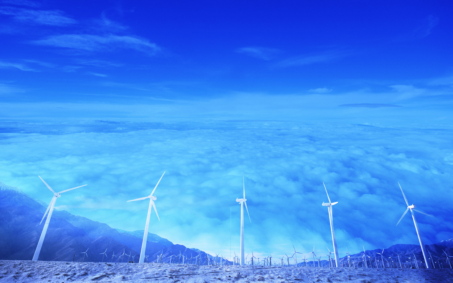 Скачать обои для рабочего стола Армия ветрянных мельниц на побережье и фото
