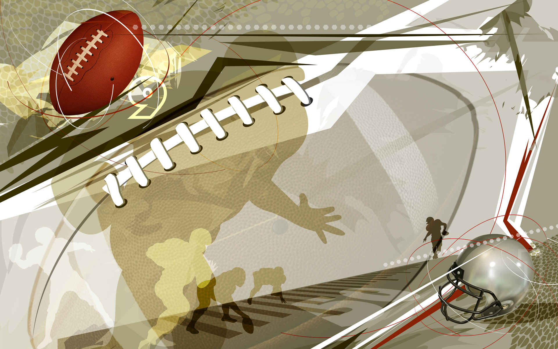 Скачать обои для рабочего стола Атрибуты американского футбола и тени игроков и фото