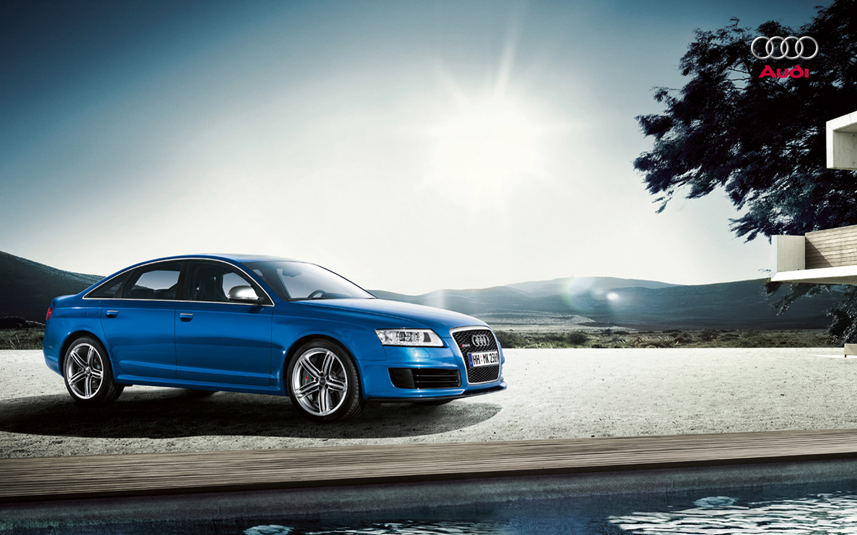 Скачать обои для рабочего стола Audi A6 blue full speed и фото