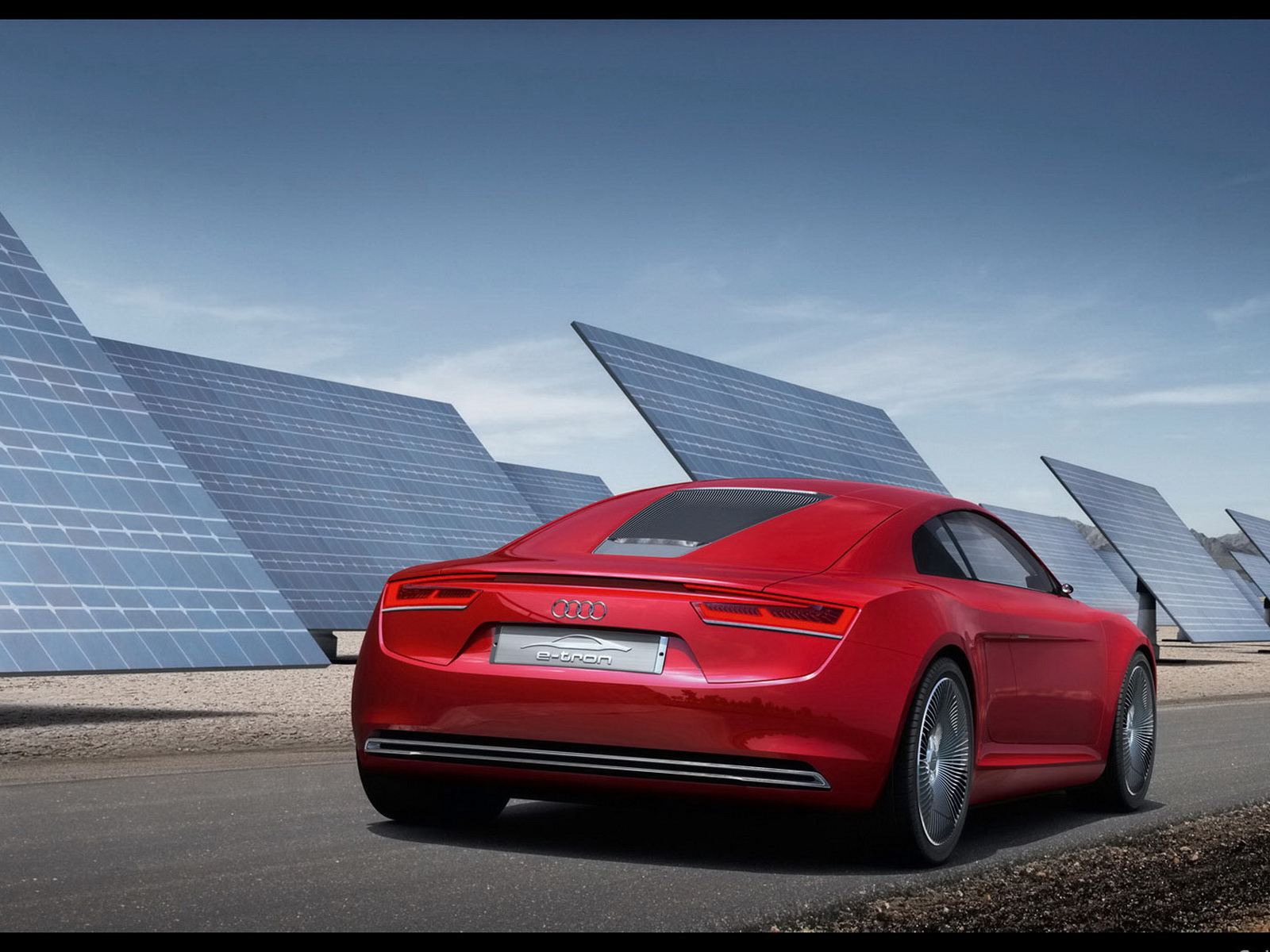 Скачать обои для рабочего стола Audi e-tron вид со стороны света и фото