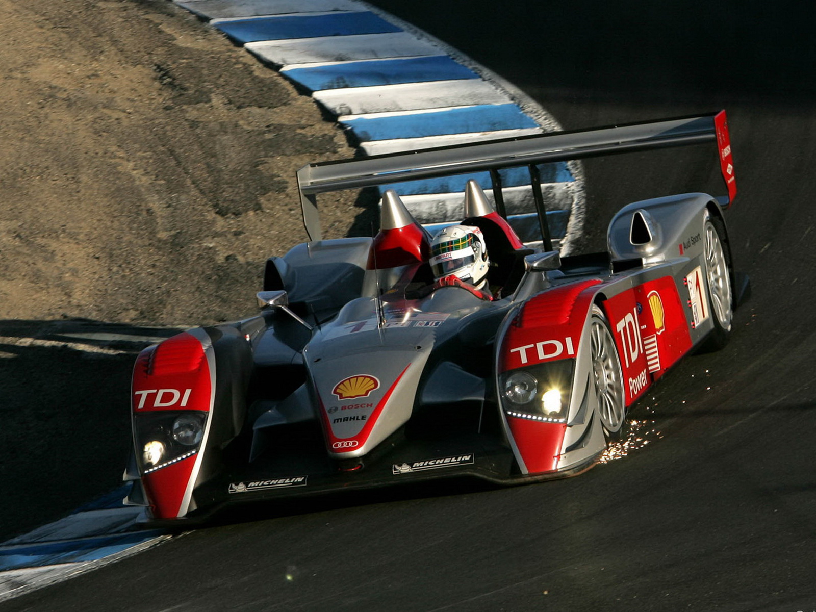 Скачать обои для рабочего стола Audi R10 TDI вид на треке и фото