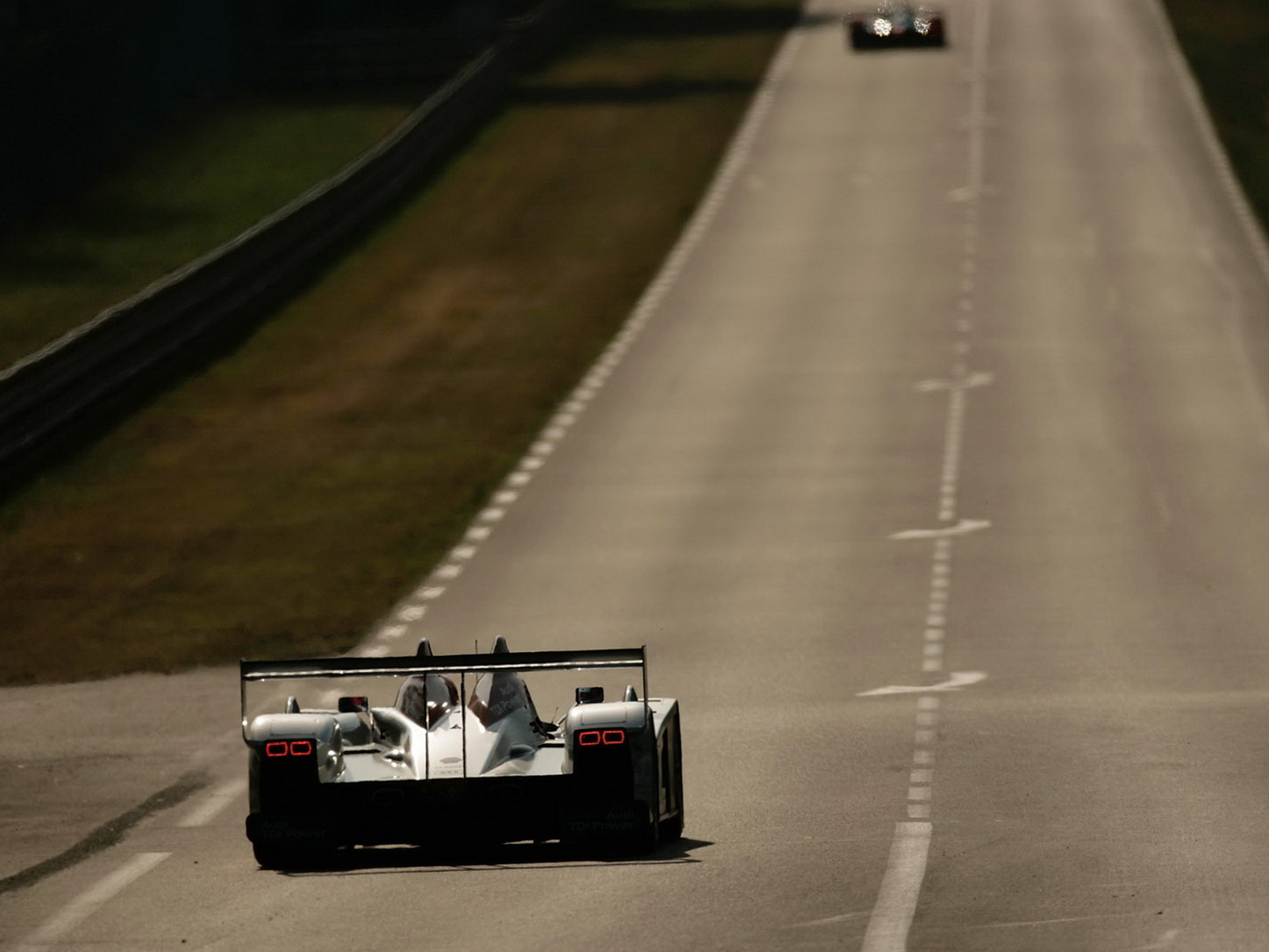 Скачать обои для рабочего стола Audi R10 TDI вид в движении на скорости и фото
