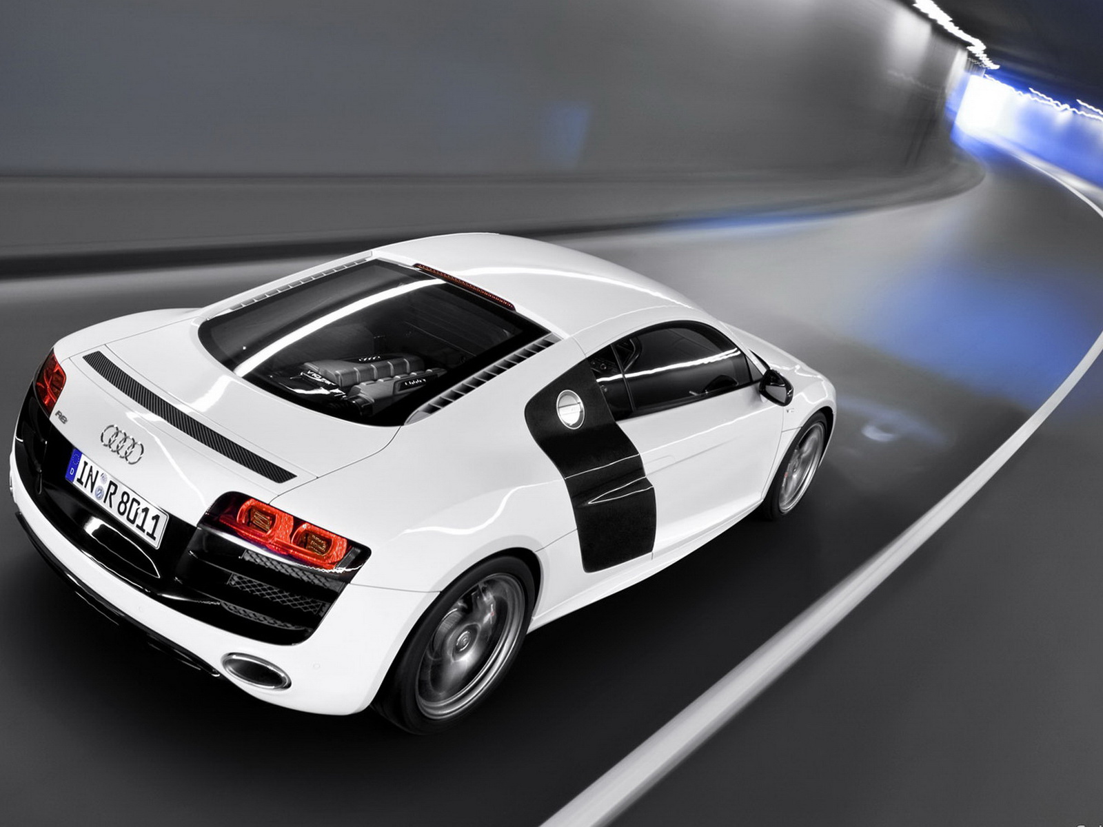Скачать обои для рабочего стола Audi R8 V10 вид в движении на скорости и фото