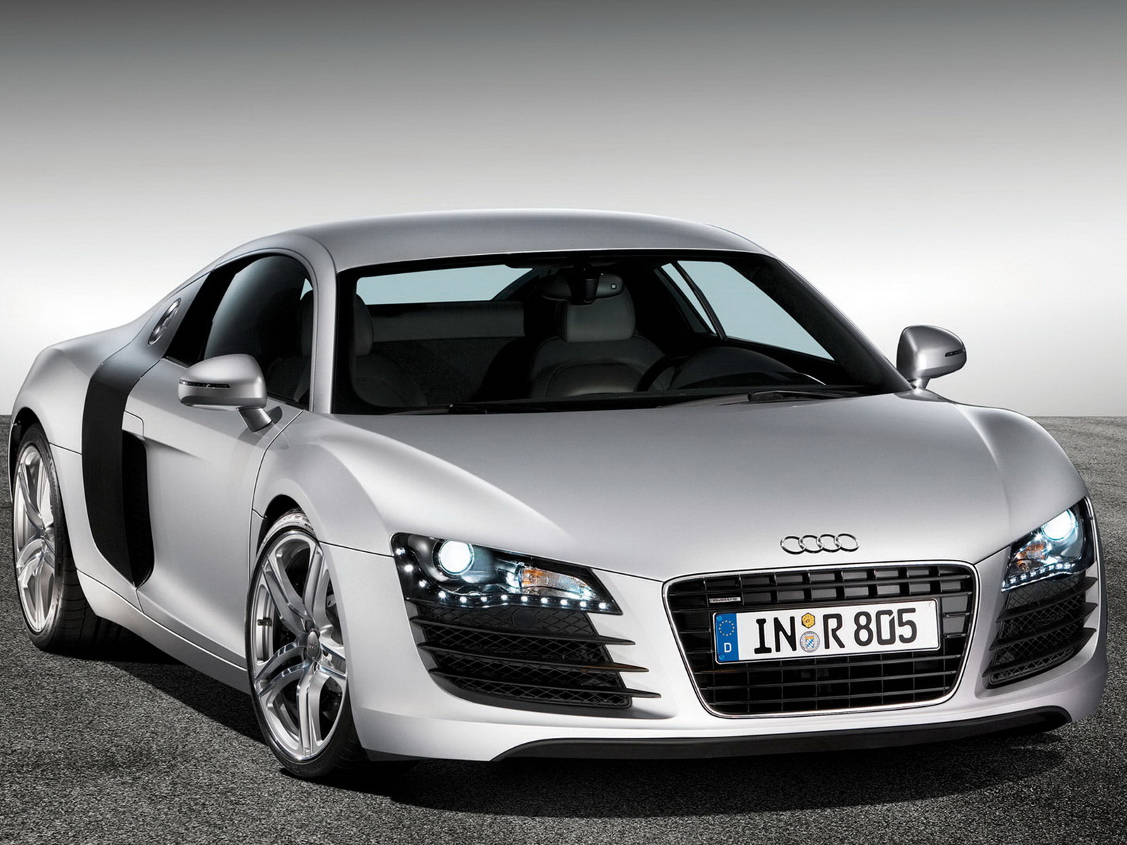 Скачать обои для рабочего стола Audi R8 вид под углом к камере и фото