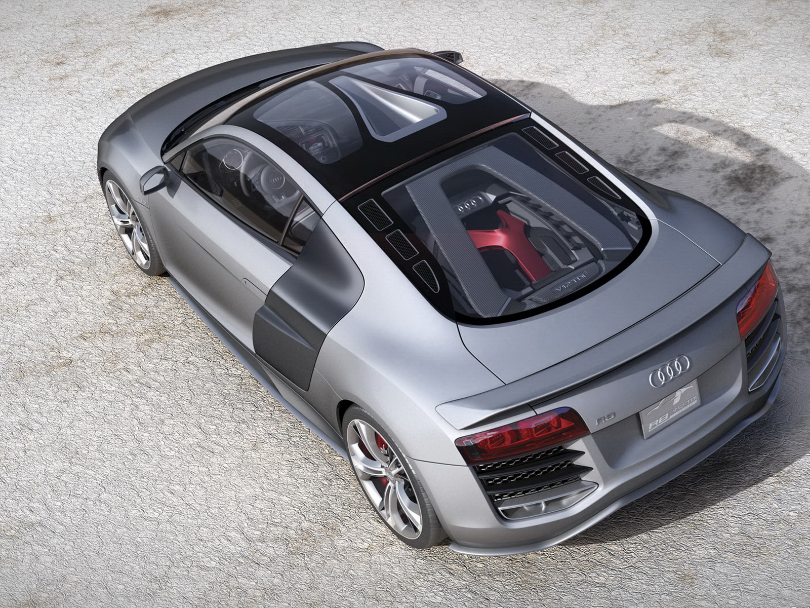 Скачать обои для рабочего стола Audi R8V12TDI 2008 вид сверху и фото