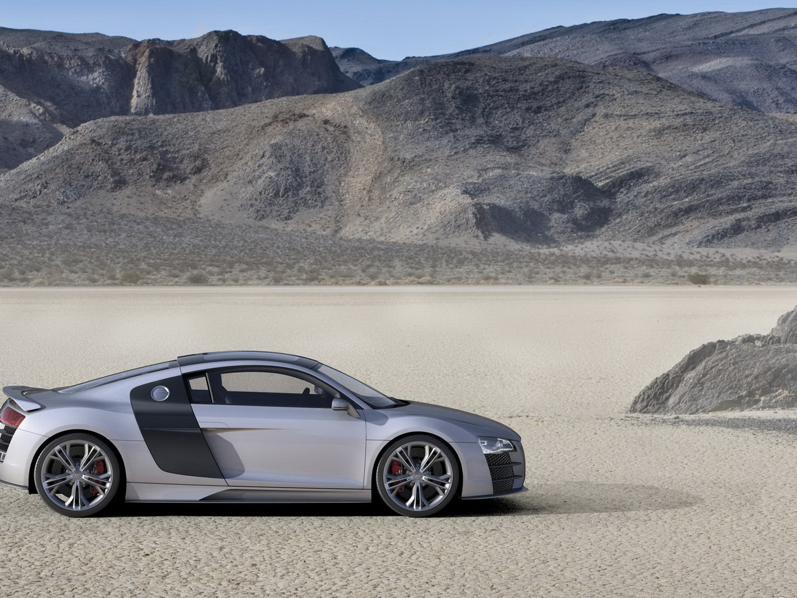 Скачать обои для рабочего стола Audi R8V12TDI 2008 вид за городом под другим ракурсом и фото
