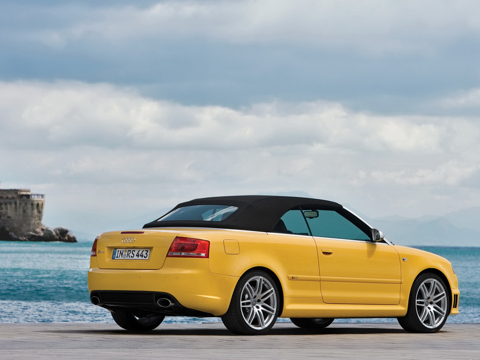 Скачать обои для рабочего стола Audi RS4 cabrio вид за городом и фото