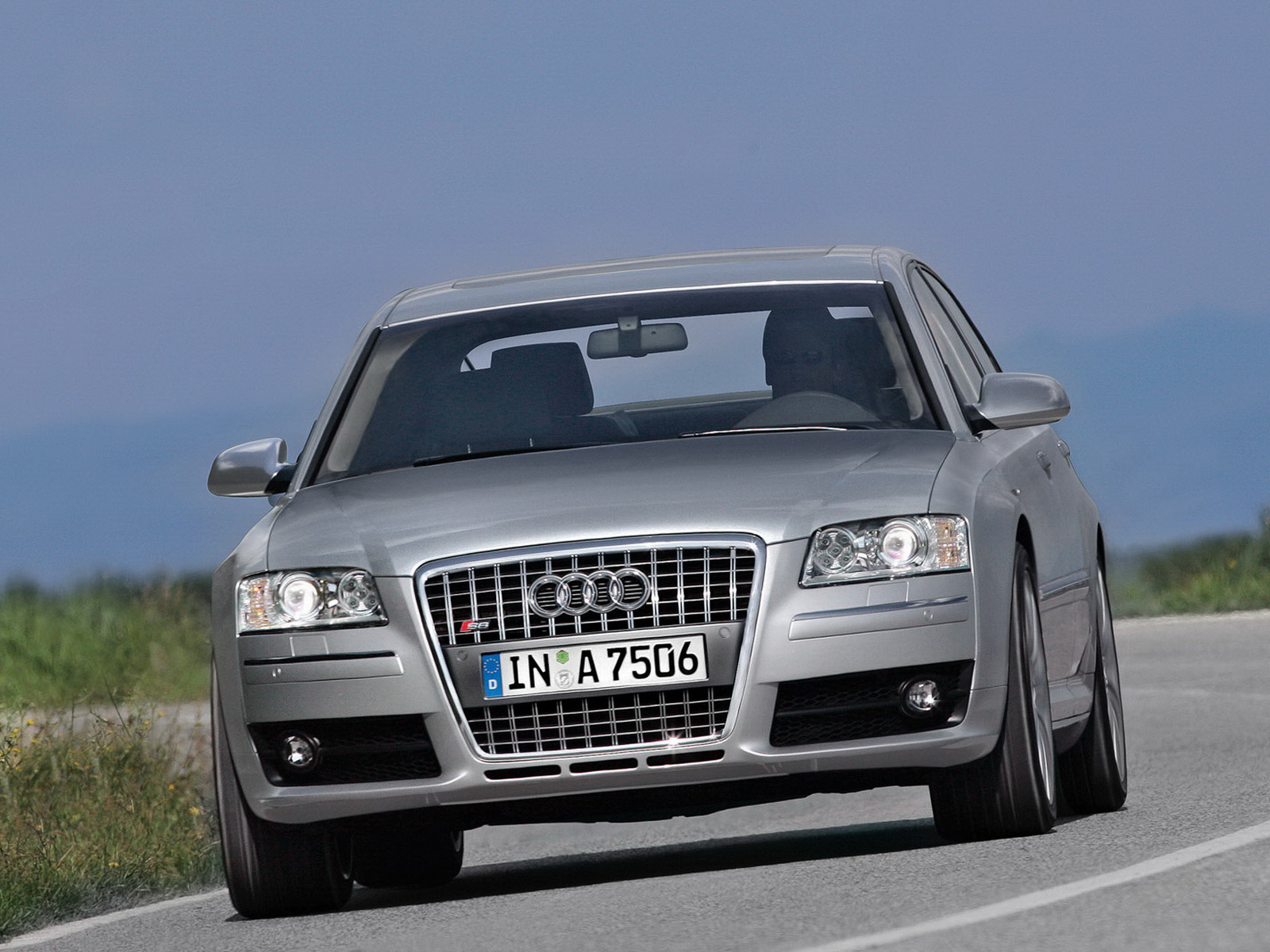 Обои Audi S8 вид в движении на скорости
