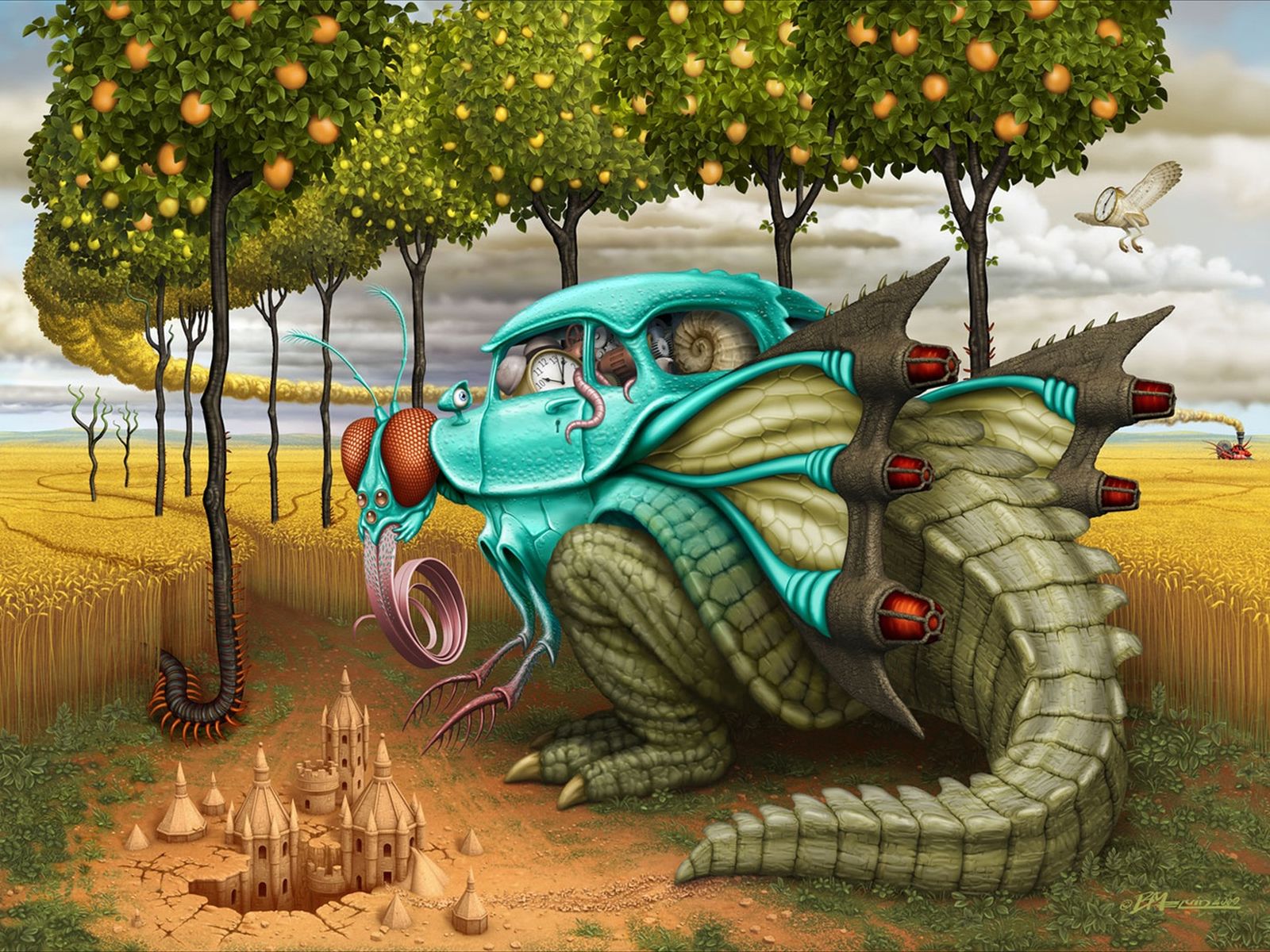 Похожие обои на Авто-крокодил и динозавр на прогулке: