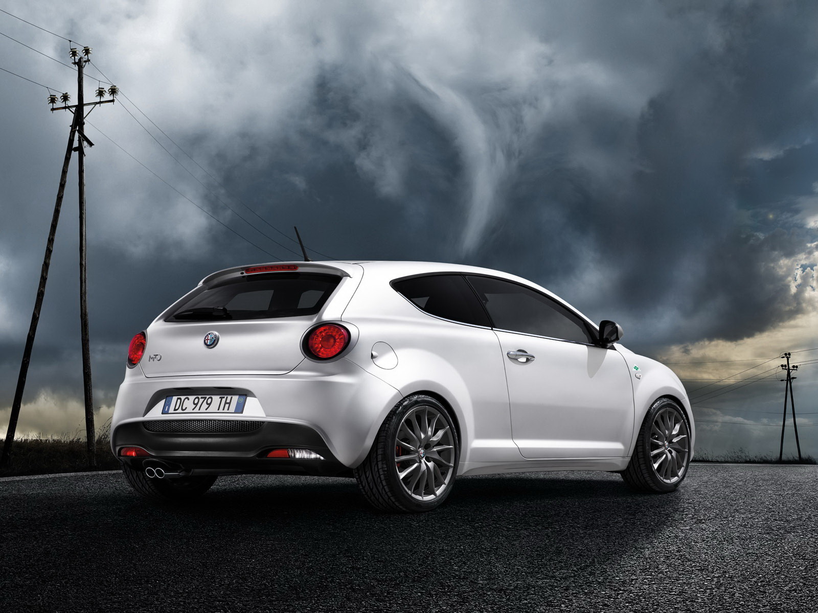 Скачать обои для рабочего стола Автомобиль Giulietta на фоне туч и фото