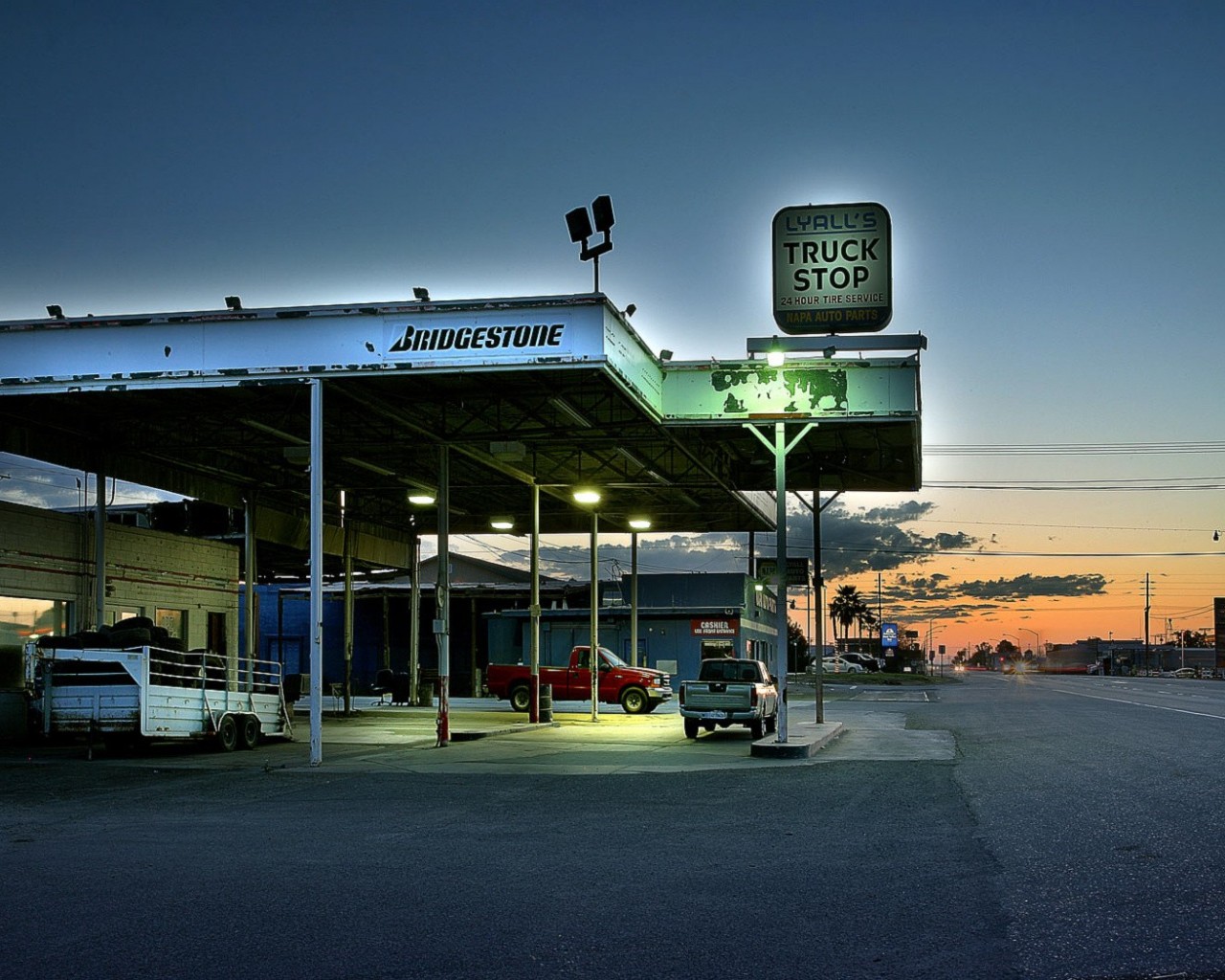 Скачать обои для рабочего стола Автозаправка на закате и фото