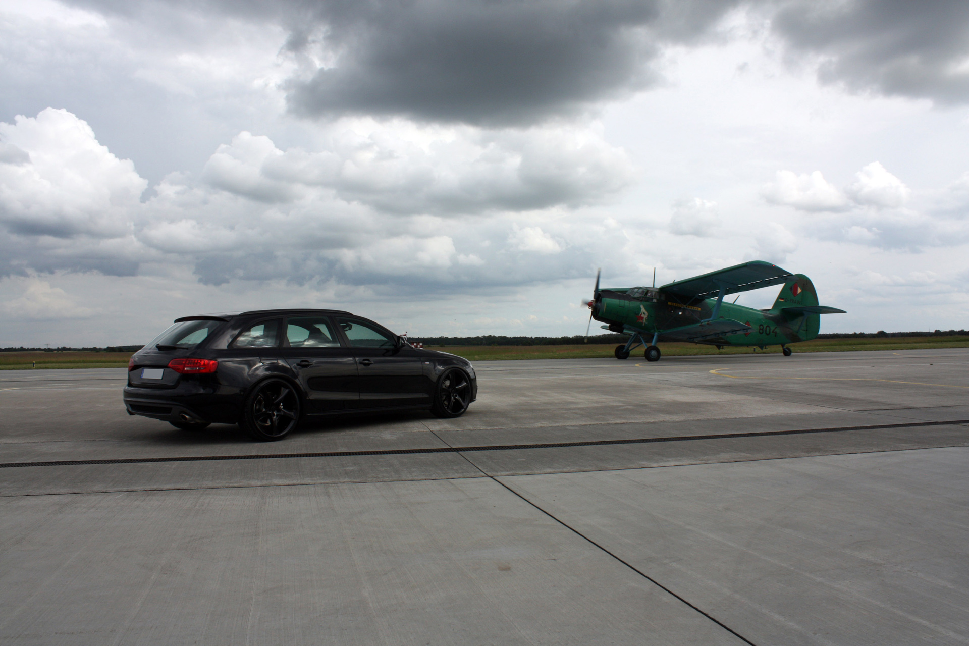 Обои AVUS Performance Audi A4 Avant Black Arrow черный и самолет