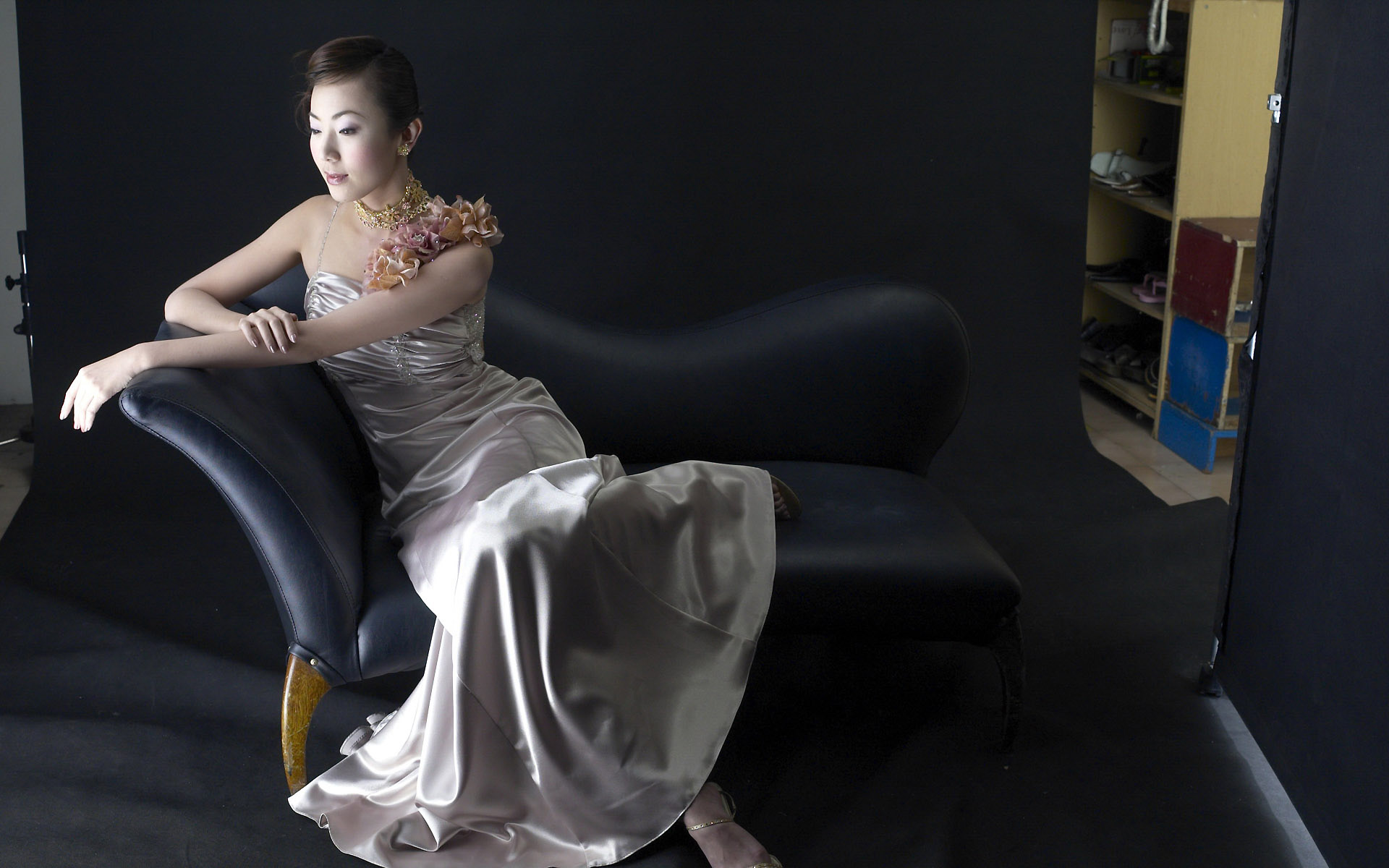 Скачать обои для рабочего стола Азиатка на черном фоне и фото