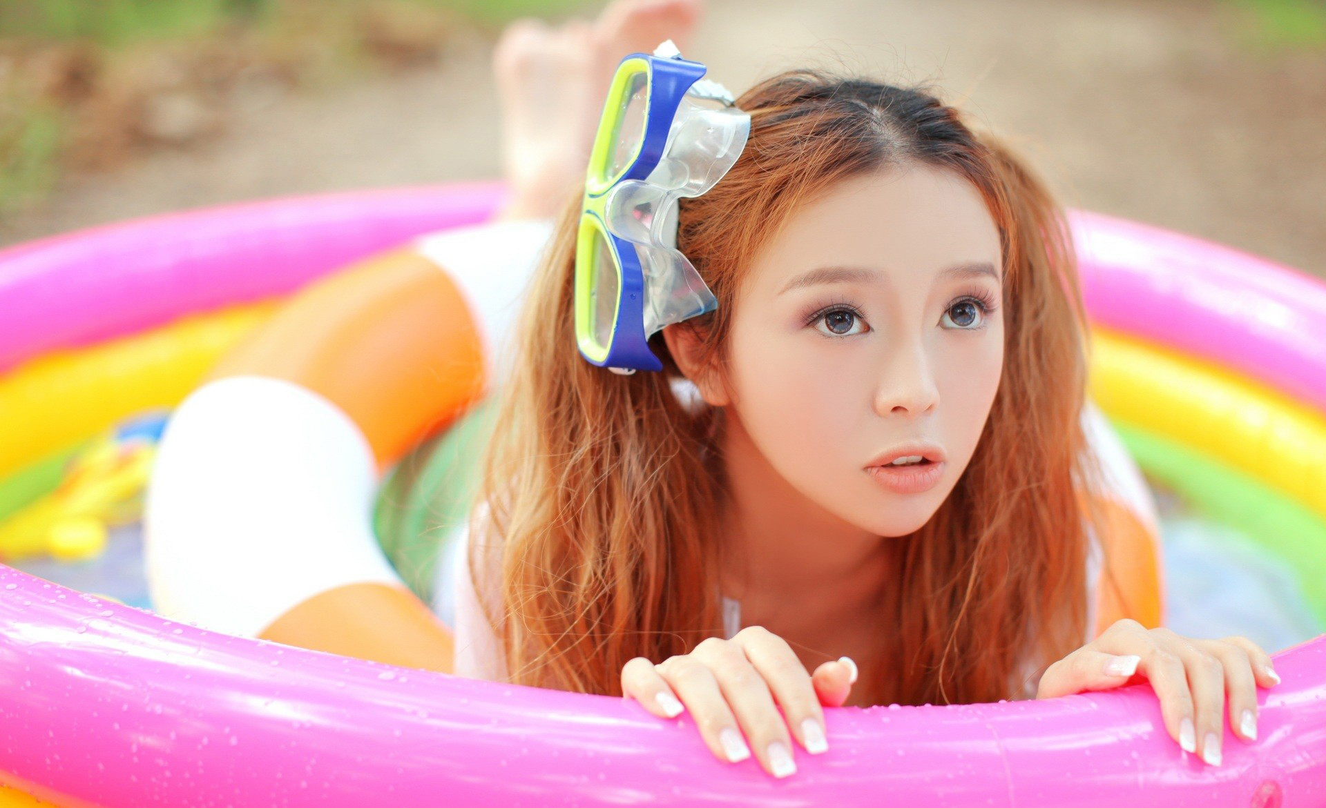 Похожие обои на Азиаточка выглядывает из бассейна: