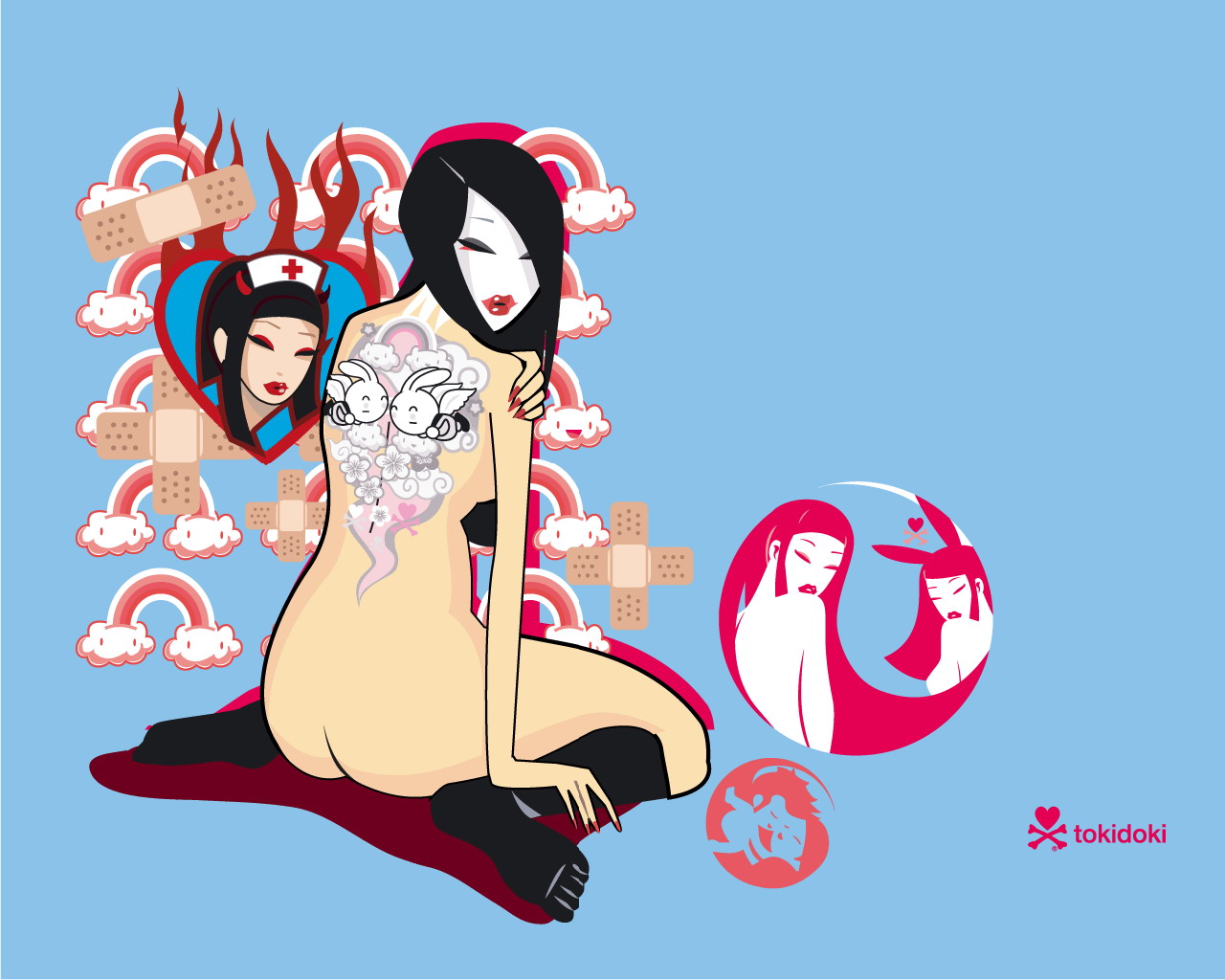 Скачать обои для рабочего стола Азиатская девушка с тату на спине и фото