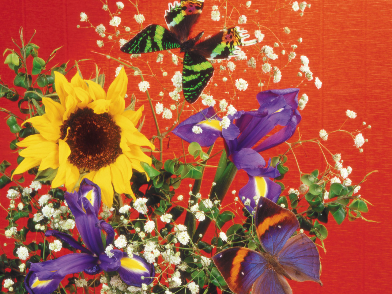 Скачать обои для рабочего стола Бабочка и букет и фото