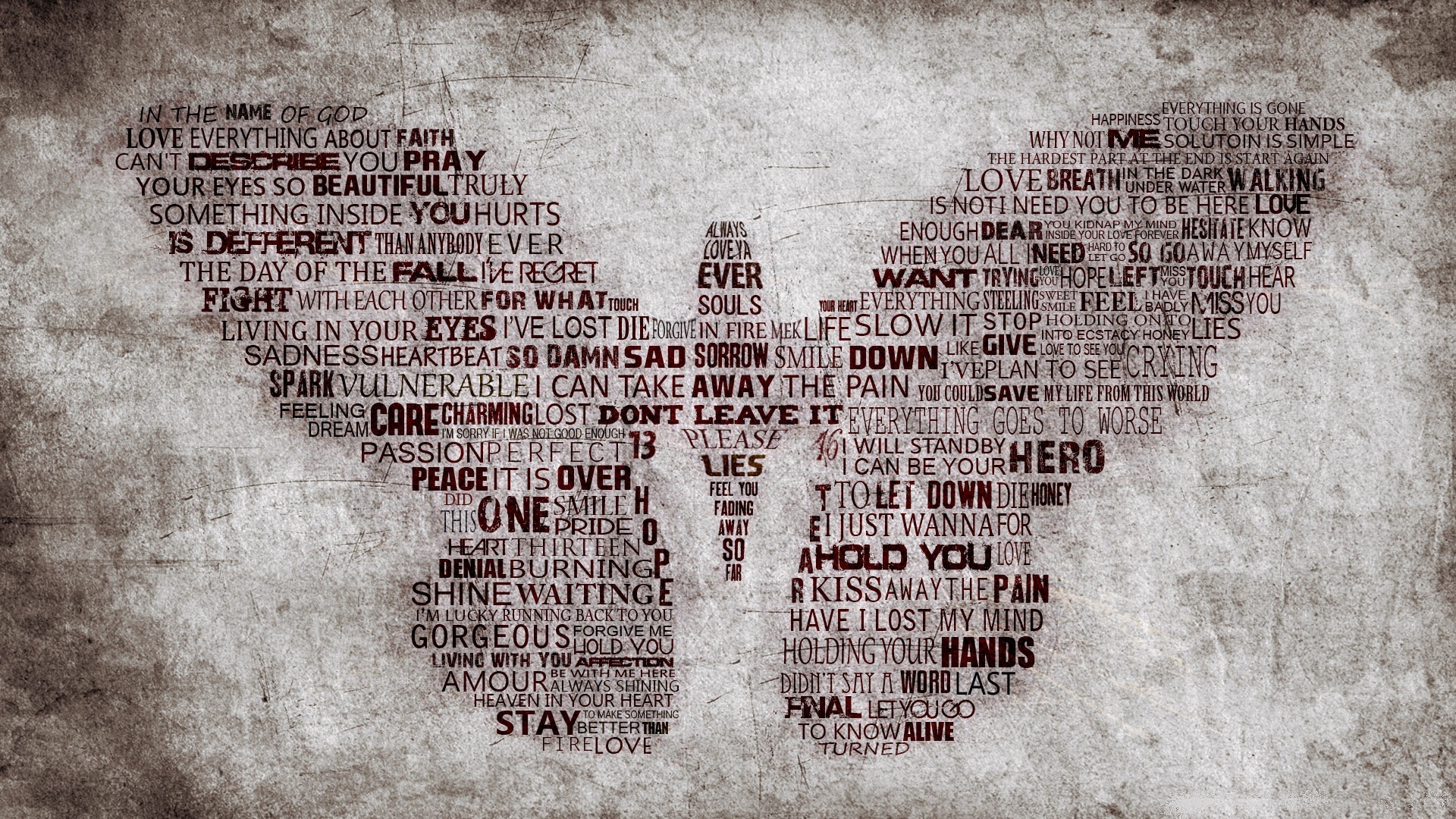 Скачать обои для рабочего стола Бабочка из слов на стене и фото