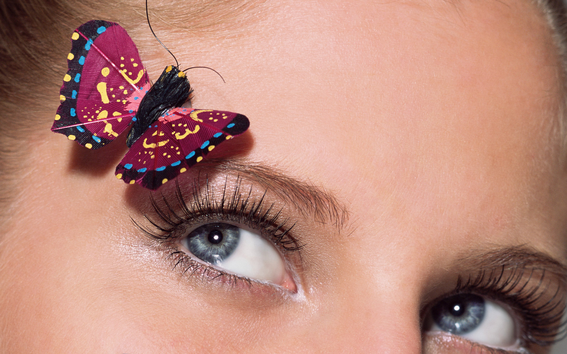 Скачать обои для рабочего стола Бабочка на брови девушки и фото