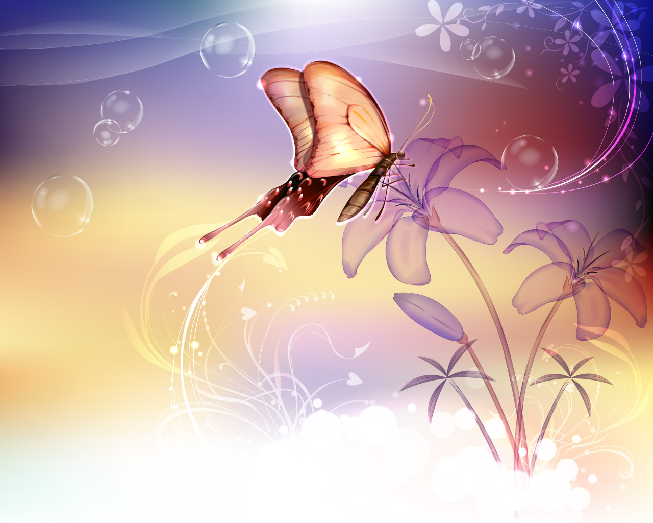 НАВИГАЦИЯ: ОБОИ ДЛЯ РАБОЧЕГО СТОЛА >> ОБОИ Рисованные >> Обои Бабочка на цветке