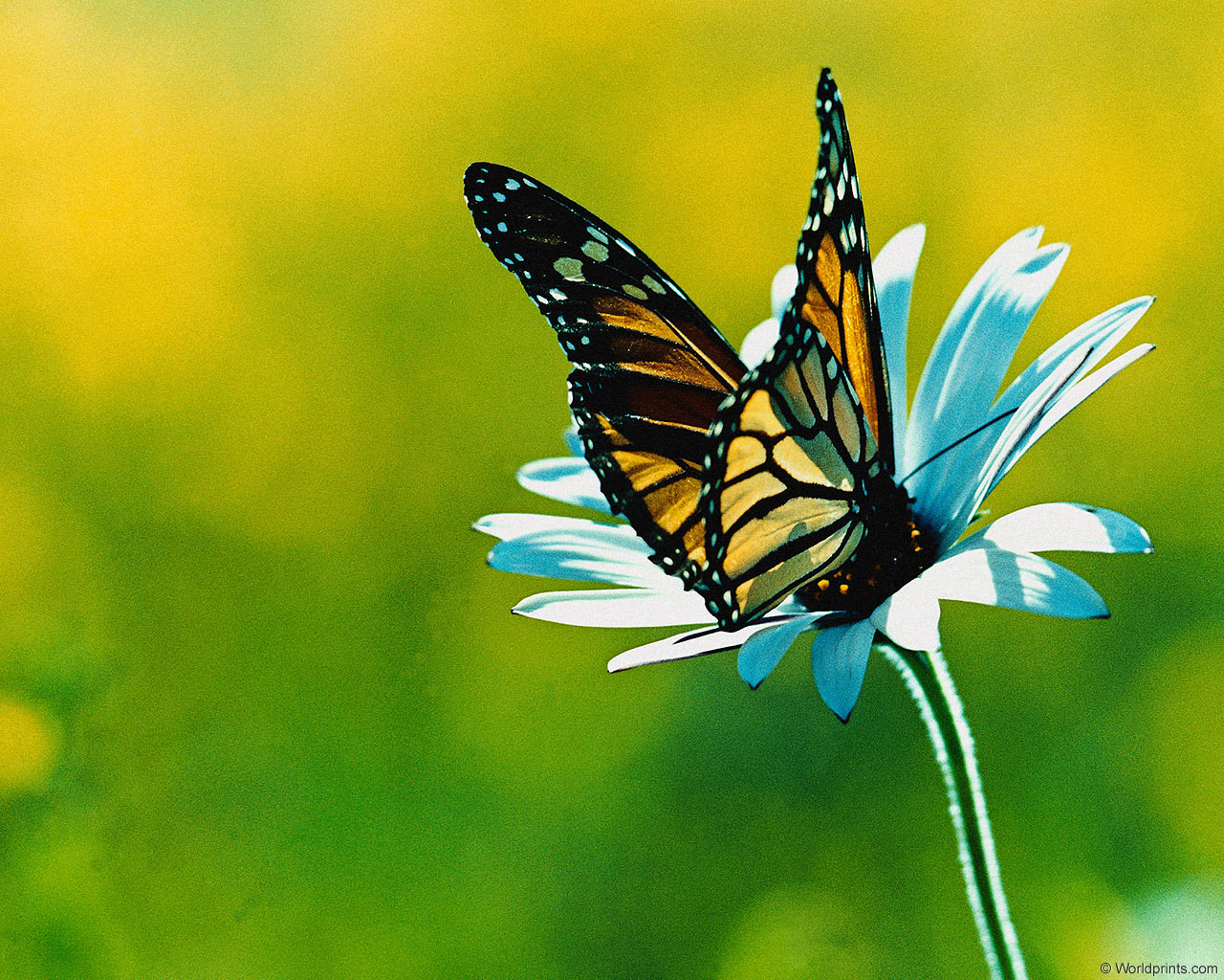 Скачать обои для рабочего стола Бабочка на голубом цветке и фото