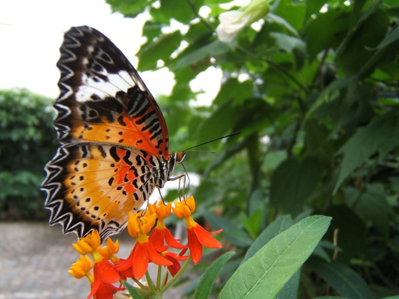 Скачать обои для рабочего стола Бабочка на красных колокольчиках и фото