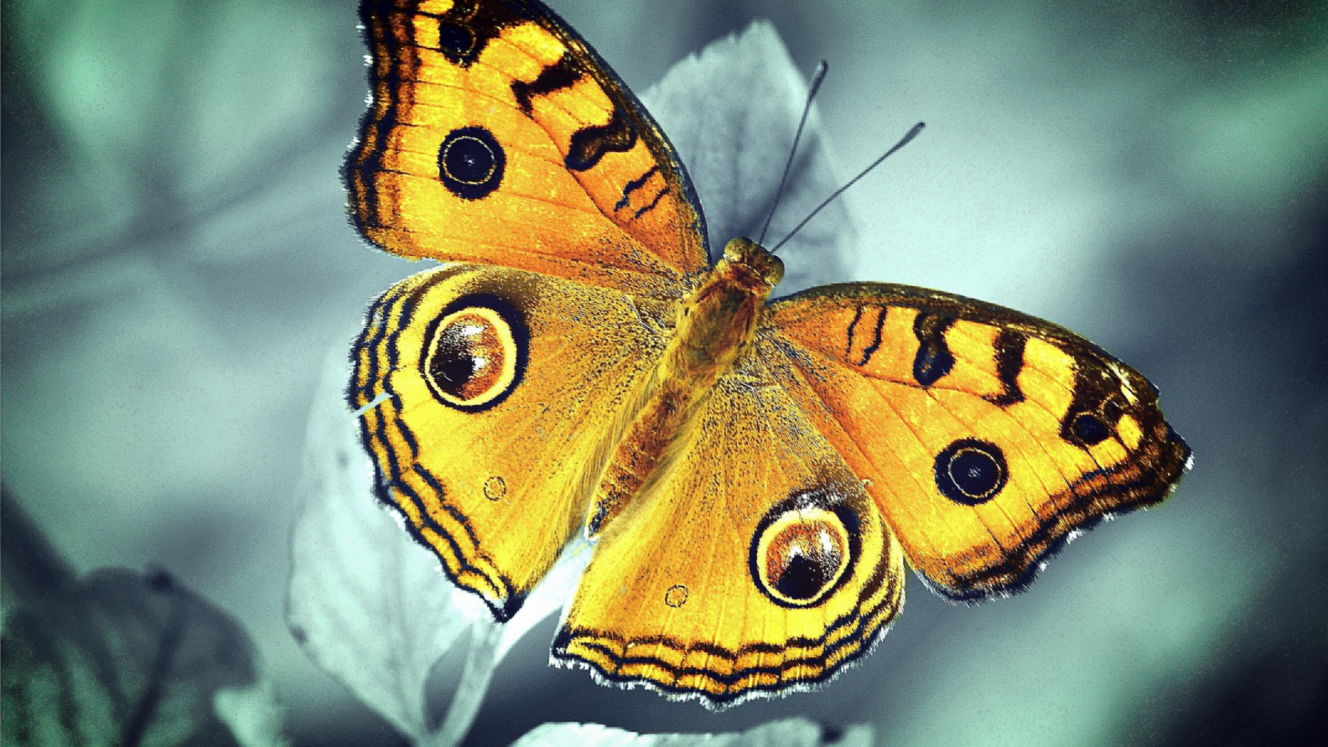 Скачать обои для рабочего стола Бабочка на листе крупным планом и фото