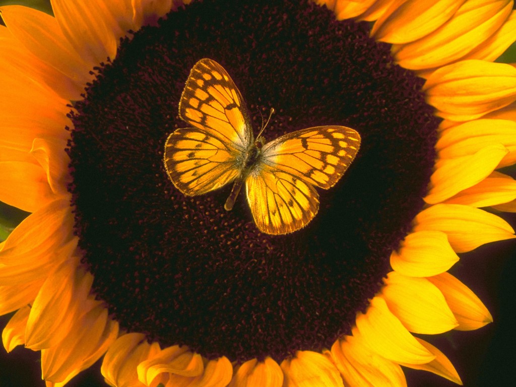 Скачать обои для рабочего стола Бабочка на подсолнухе и фото