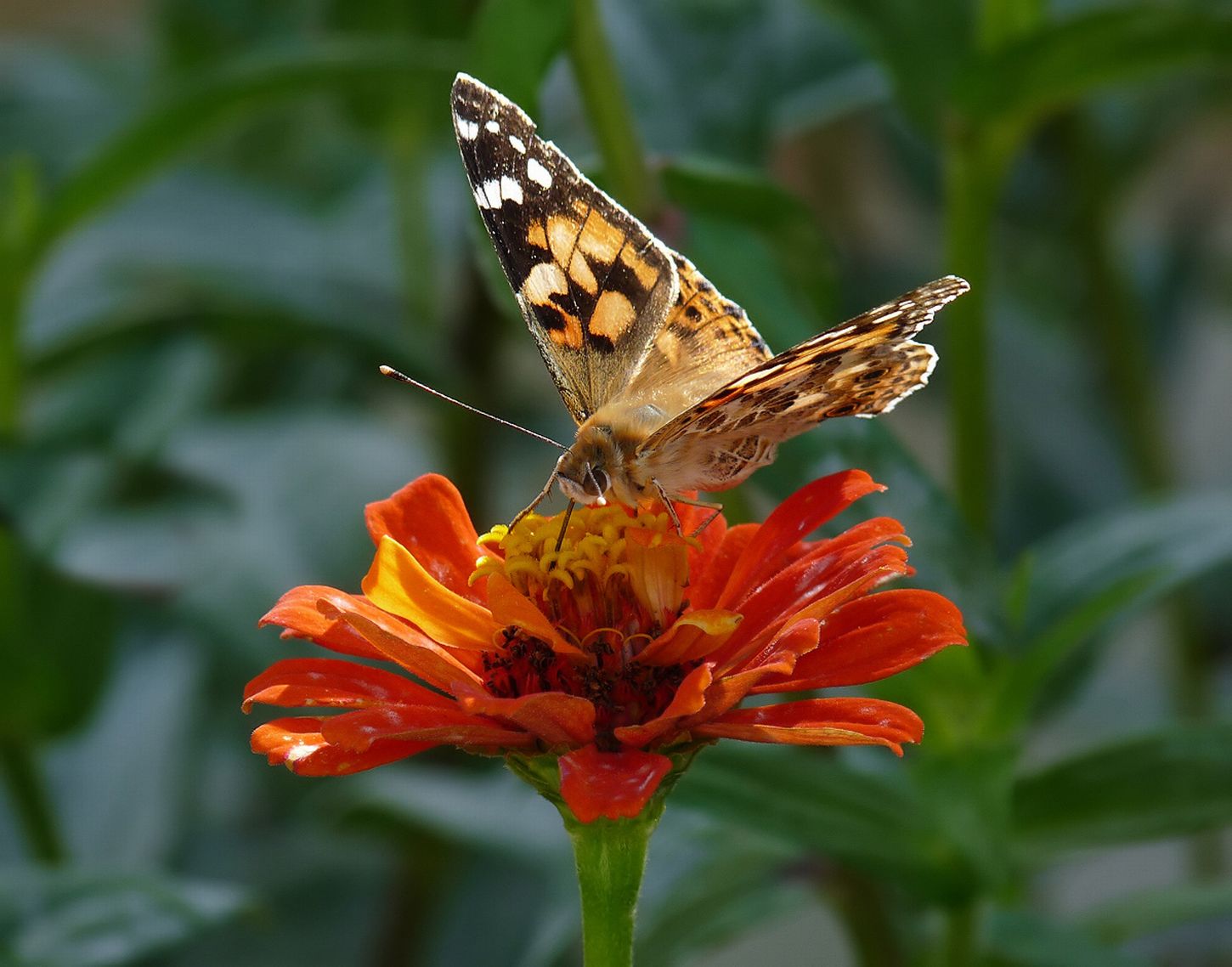 Скачать обои для рабочего стола Бабочка собирает нектар с цветка и фото