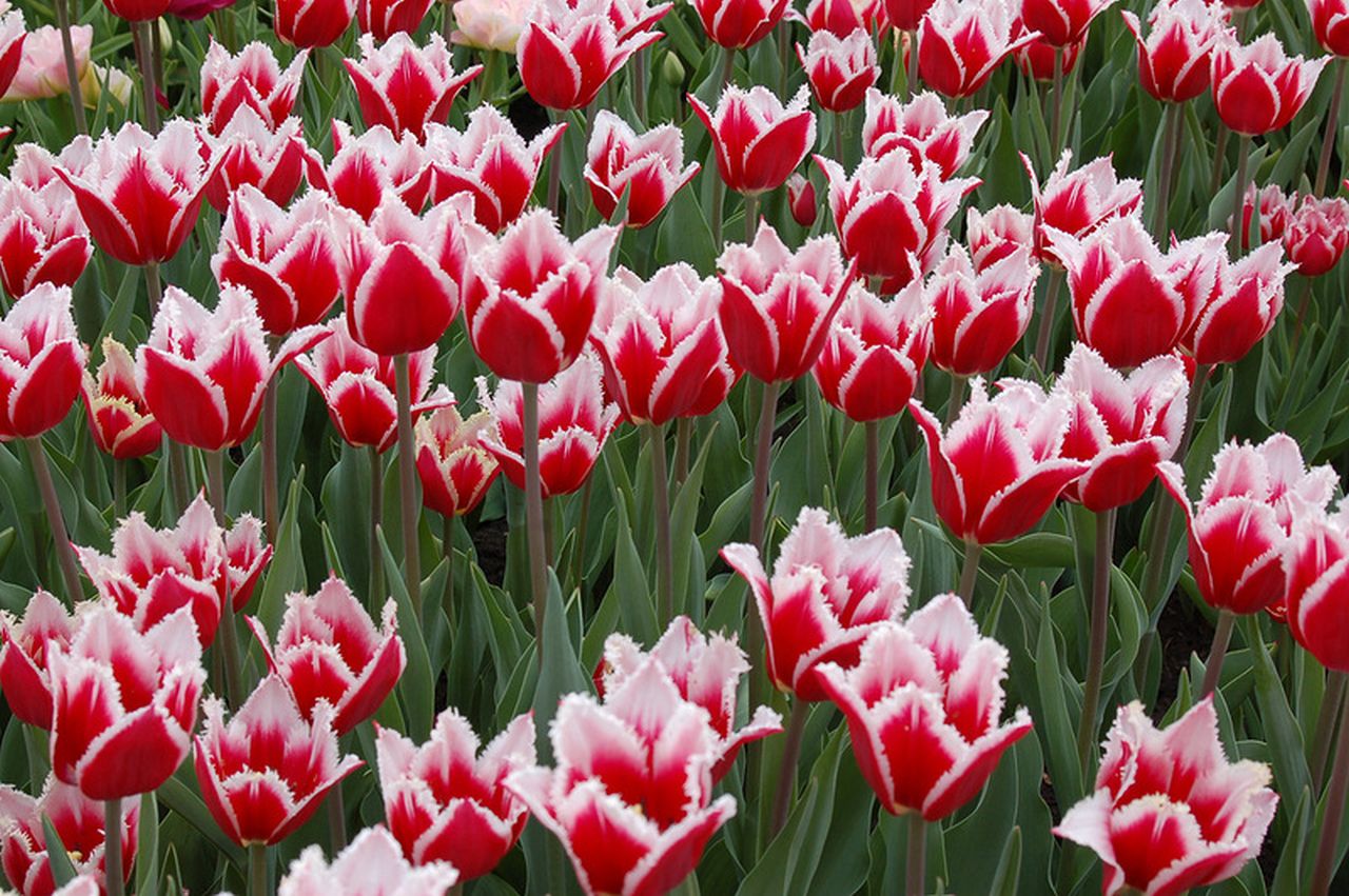 Обои Бахромчатые красные тюльпаны с белой каймой
