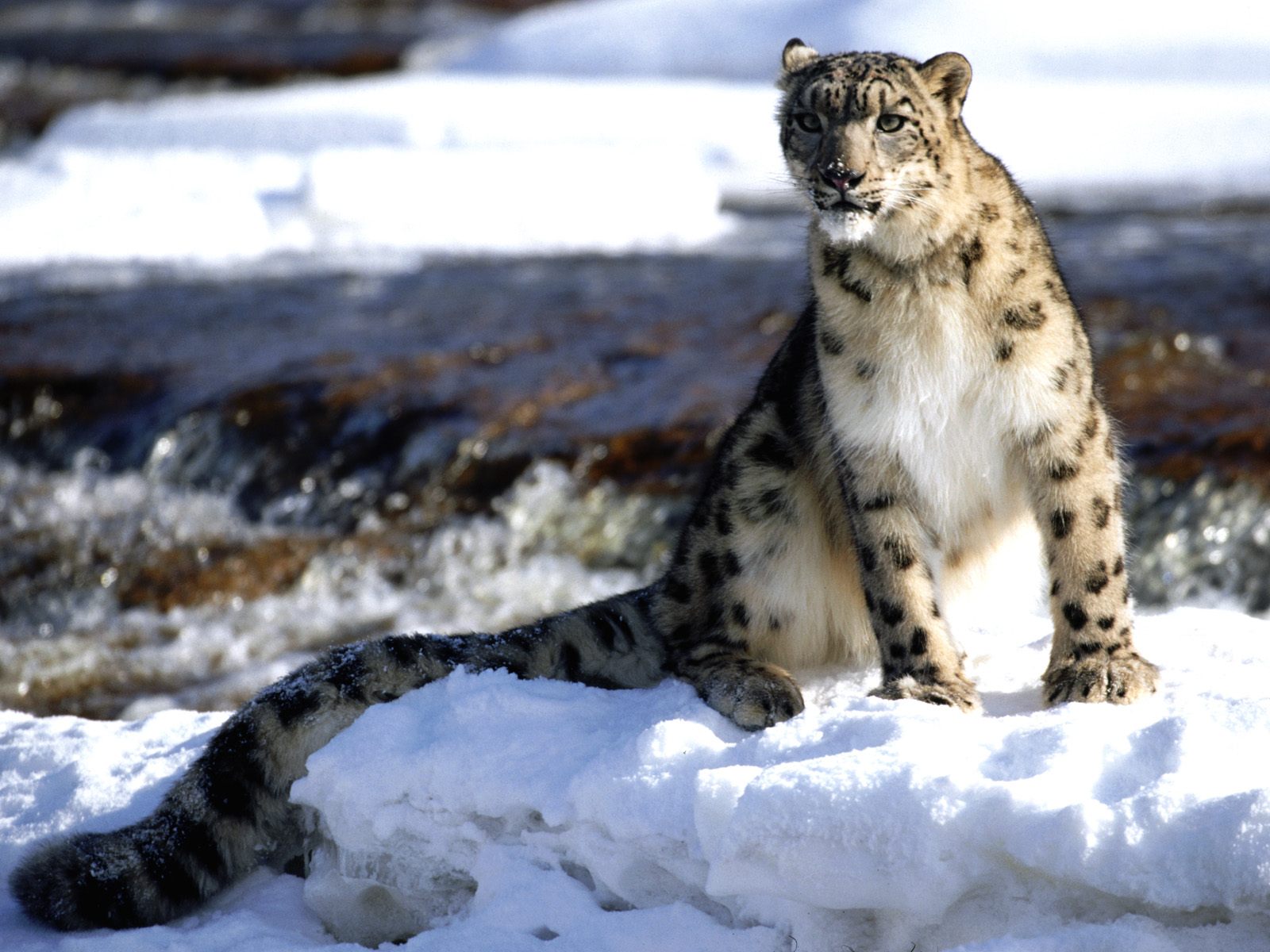 Скачать обои для рабочего стола Барс на белом снегу и фото