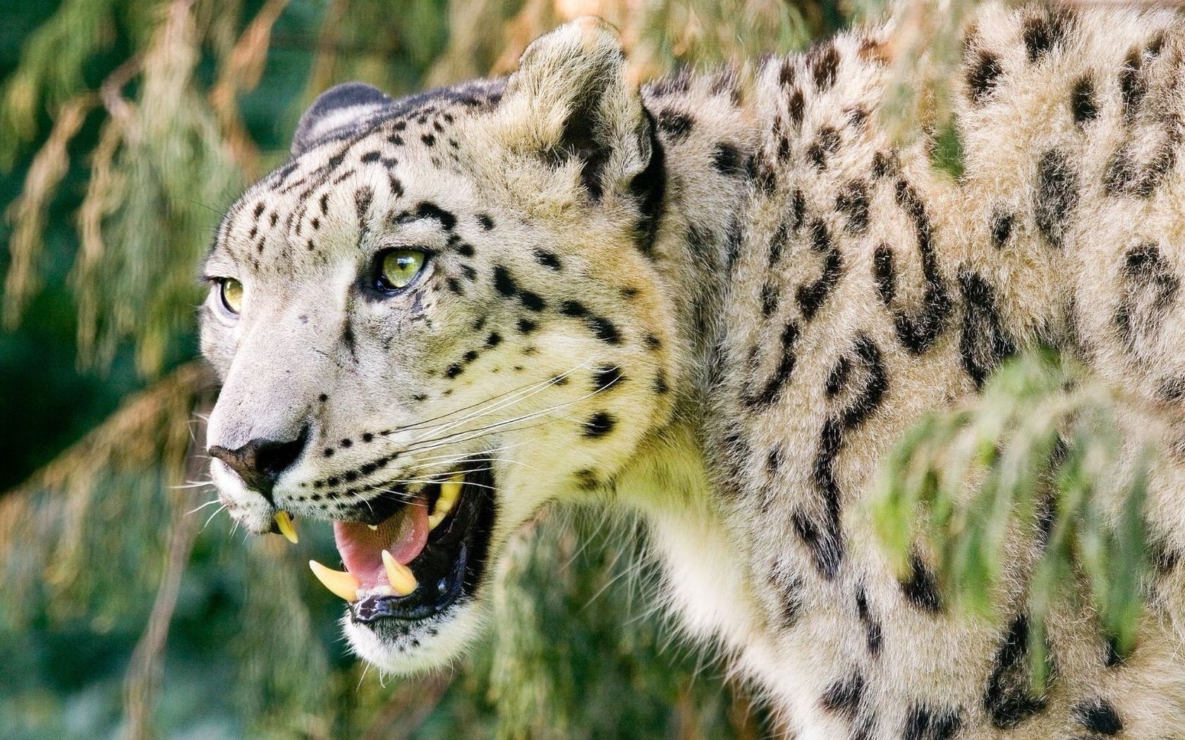 Скачать обои для рабочего стола Барс с разинутой пастью и фото