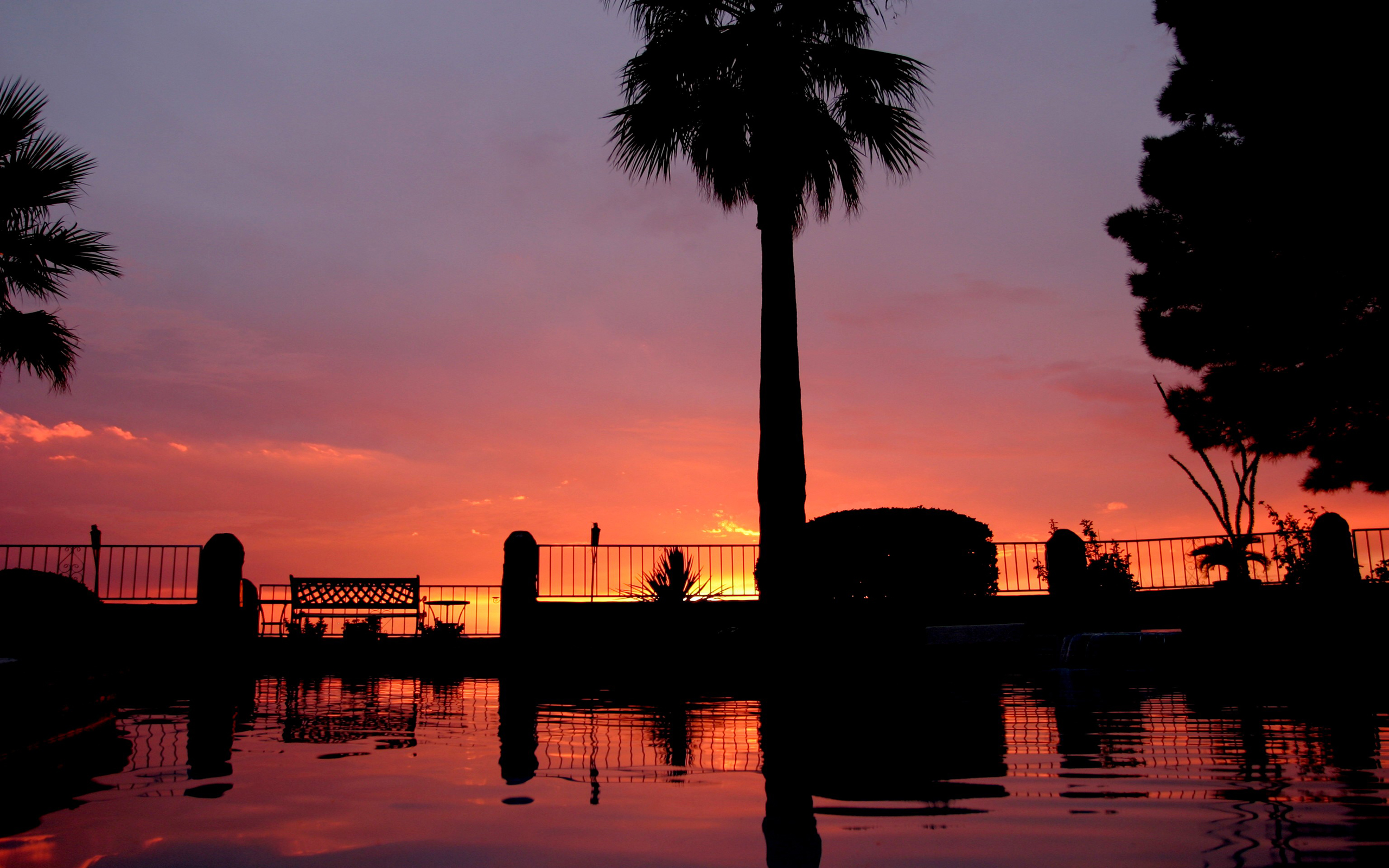 Скачать обои для рабочего стола Бассейн на фоне заката и фото