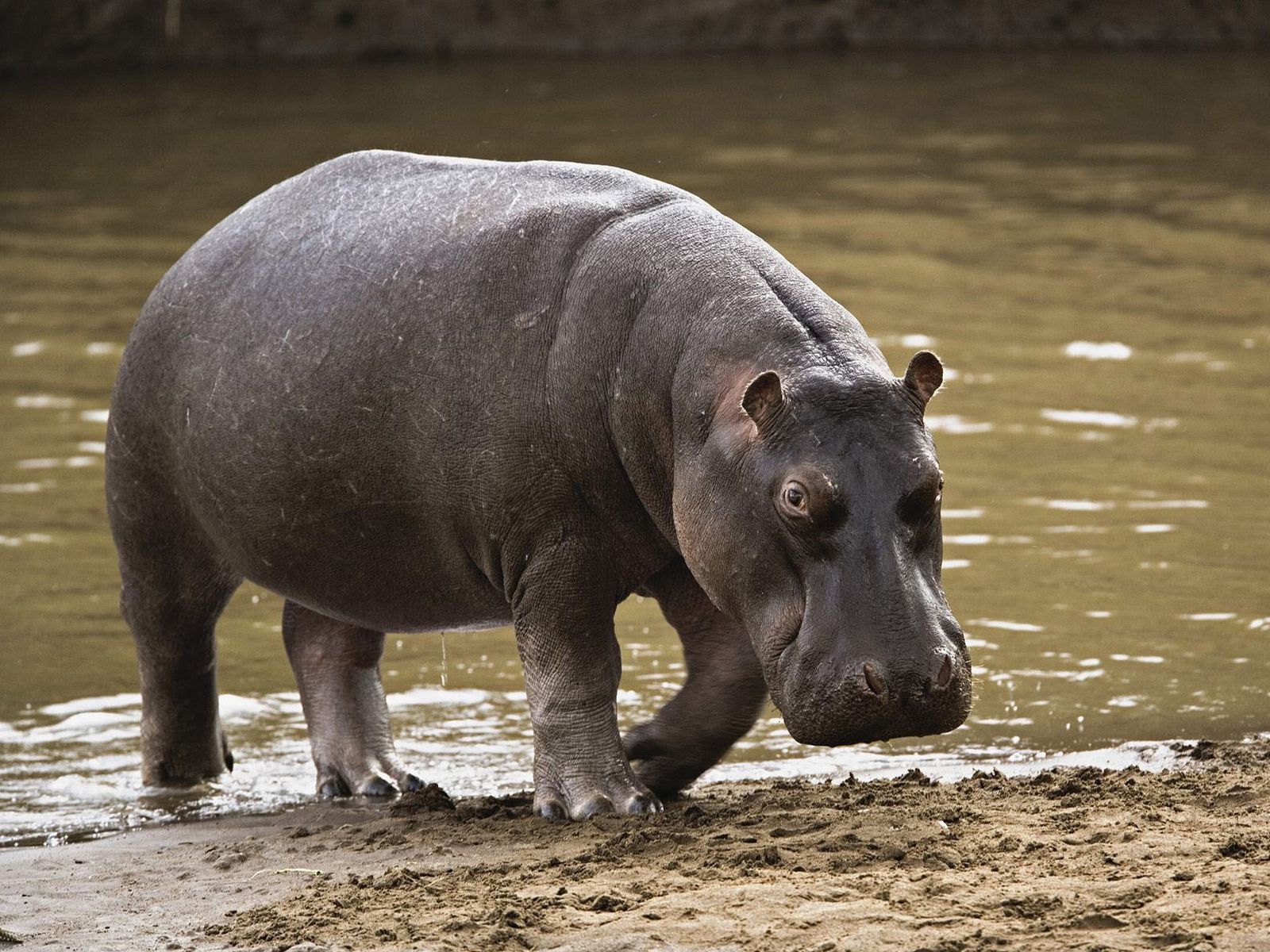 Скачать обои для рабочего стола Бегемот вышел из воды и фото