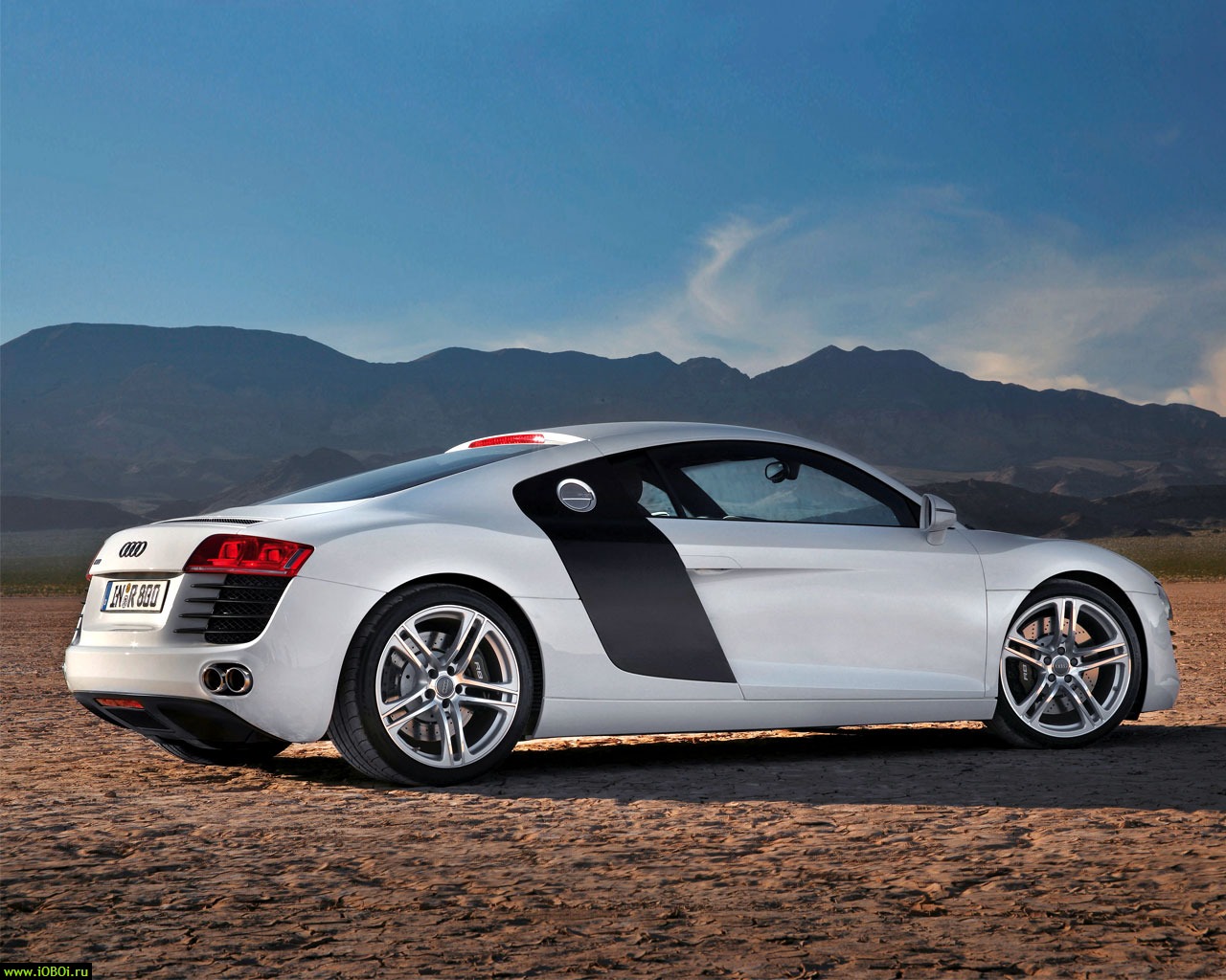 Скачать обои для рабочего стола Белая ауди на фоне гор и фото